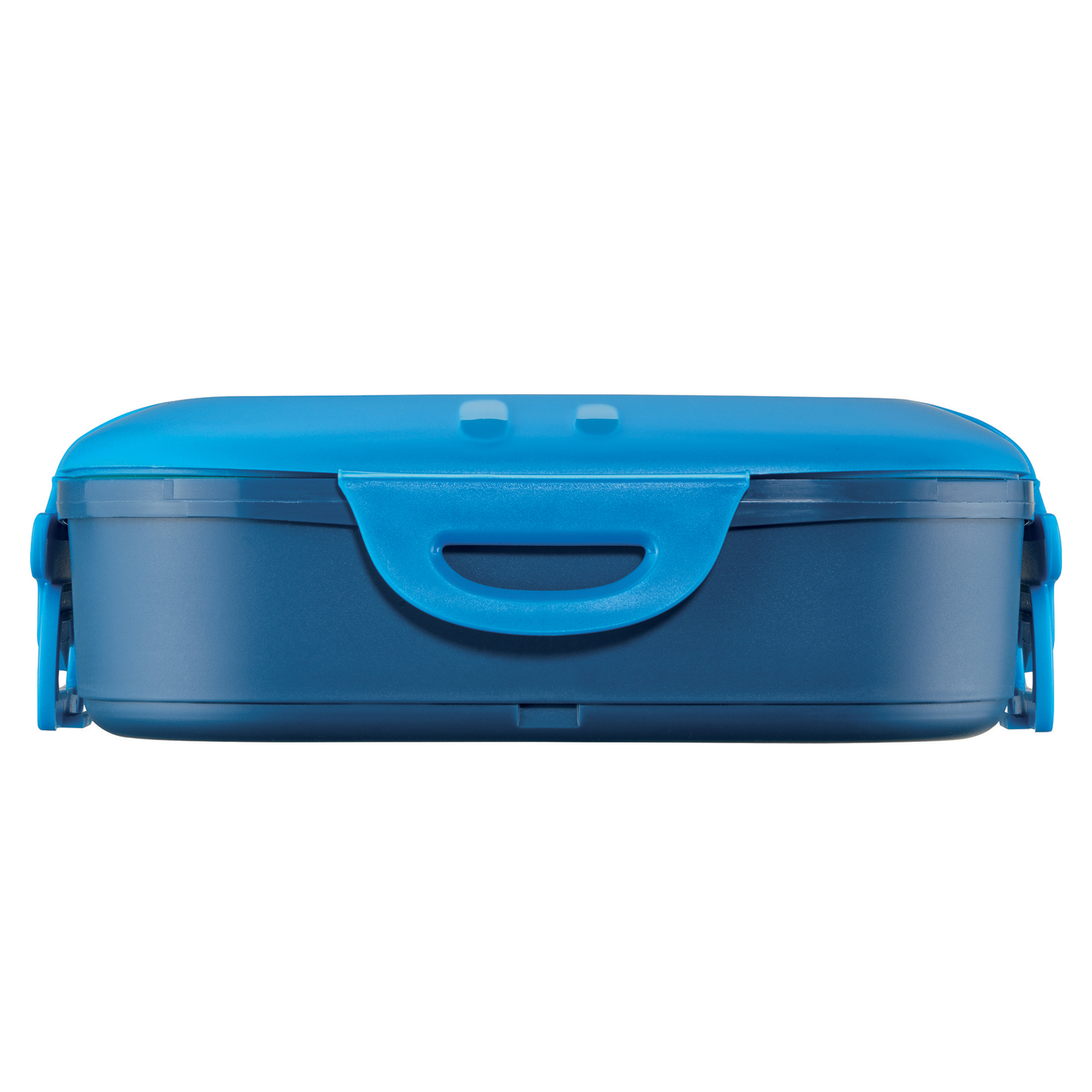 Jednoposchodový obedový box z kolekcie Concept Kids v modrej farbe, vyrobený z kvalitného a zdravotne nezávadného polypropylénu a ABS, čo zabezpečuje bezpečné a zdravé použitie. Tento box neobsahuje bisfenol A ani ftaláty.