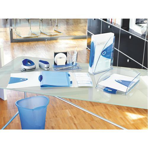 Dierovač v jedinečnom dizajne unikátneho výrobkového radu kancelárskych potrieb Leitz Allura. Vhodné pre používanie do kancelárie aj domácnosti. Vrchná časť je vyrobená z plastu. Kovový rám pre maximálnu odolnosť dlhú životnosť. Dômyselné umiestnenie zámku ramena na vrchnej časti dierovača. Jeho uzamknutím ušetríte miesto napríklad pri ukladaní do zásuvky pracovného stola. Pohodlné vyprázdňovanie odrezkov bez nebezpečia ich rozsypania (plastové priehľadné dno sa odklopí iba čiastočne, nie je nutné ho odnímať celé). V ponuke elegantná kombinácia farieb. Vzdialenosť dierovacích segmentov : 80 mm Príložník pre formáty A4, A5, A6, Folio, US-Quart a 8 x 8 x 8 Kapacita dierovania: 25 listov Farba: Modrá