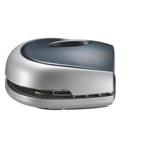 Malý, šikovný model, vhodný aj na prenášanie v kufríku alebo v aktovke. Celokovový, s ukazovatežom stredu dierovania. Plastové, protišmykové dno je šetrné k nábytku. Kapacita dierovania: 10 listov.