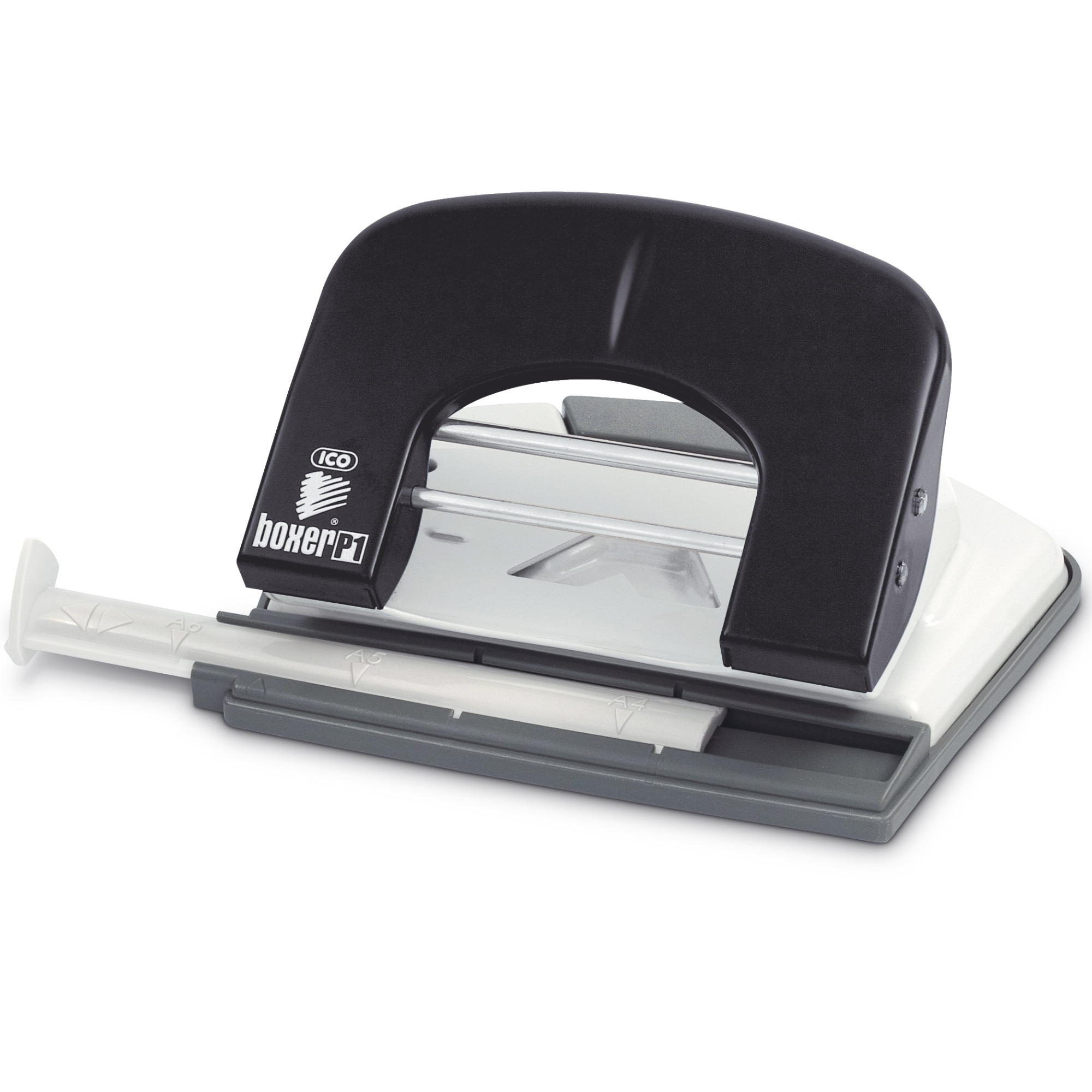 Kancelárska celokovová dierovačka s rozšíreným dnom, vďaka ktorému je pri práci stabilný. Vysúvací príložník pre štandardné formáty A4, A5, A6. Kapacita dierovania je 15 listov. Priemer dier 5,5mm, rozteč 80mm.