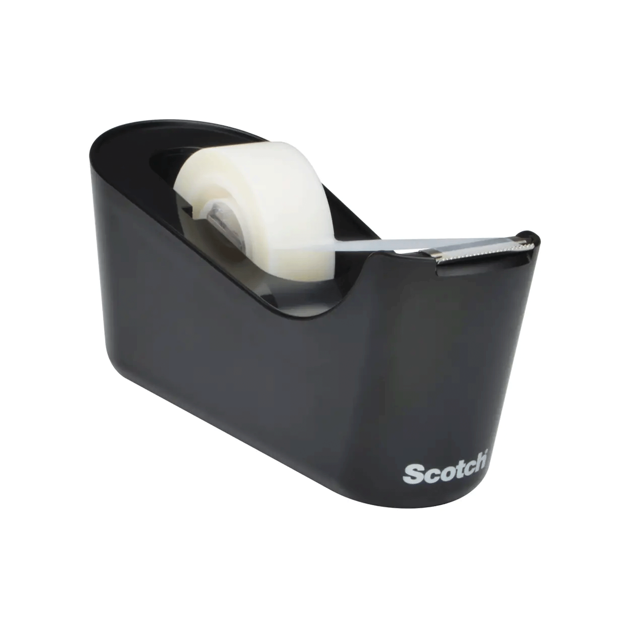 Moderný a spoľahlivý dávkovač lepiacej pásky, ktorý umožňuje odvíjanie rôznych typov lepiacich pások s použitím jednej ruky. Súčasťou balenia je neviditeľná páska Scotch Magic rozmerov 19 mm × 33 m. Farba čierna.