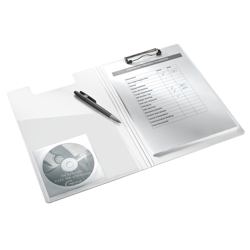Zatváracia doska s klipom v žiarivej bielej farbe Leitz WOW s dvojfarebným efektom. Ideálne na prezentácie či prejavy. Vyrobený z tvrdého plastu (polystyrol) s lesklým povrchom. Silná kovová spona bezpečne drží papiere pred vypadnutím. Priesvitné vrecko na voľné papiere a drobné predmety. Kapacita 75 hárkov (80 g/m2). Perfektne ladí s ďalšími výrobkami z radu WOW a dotvára vzhľad vašej kancelárie alebo domácej kancelárie. Rozmery 230 x 18 x 330 (mm). Váha 330g.