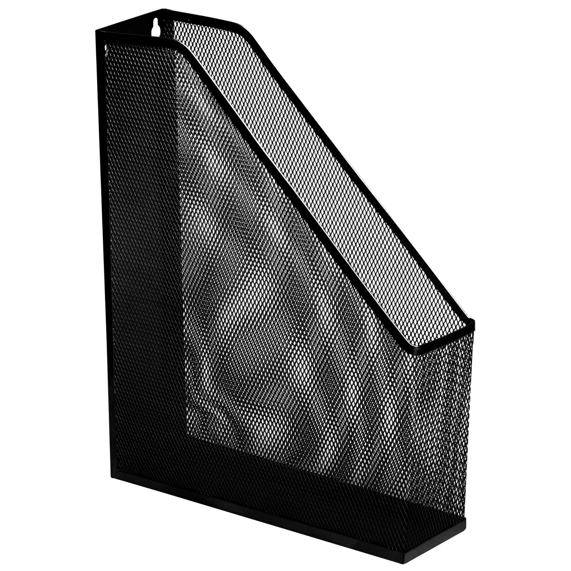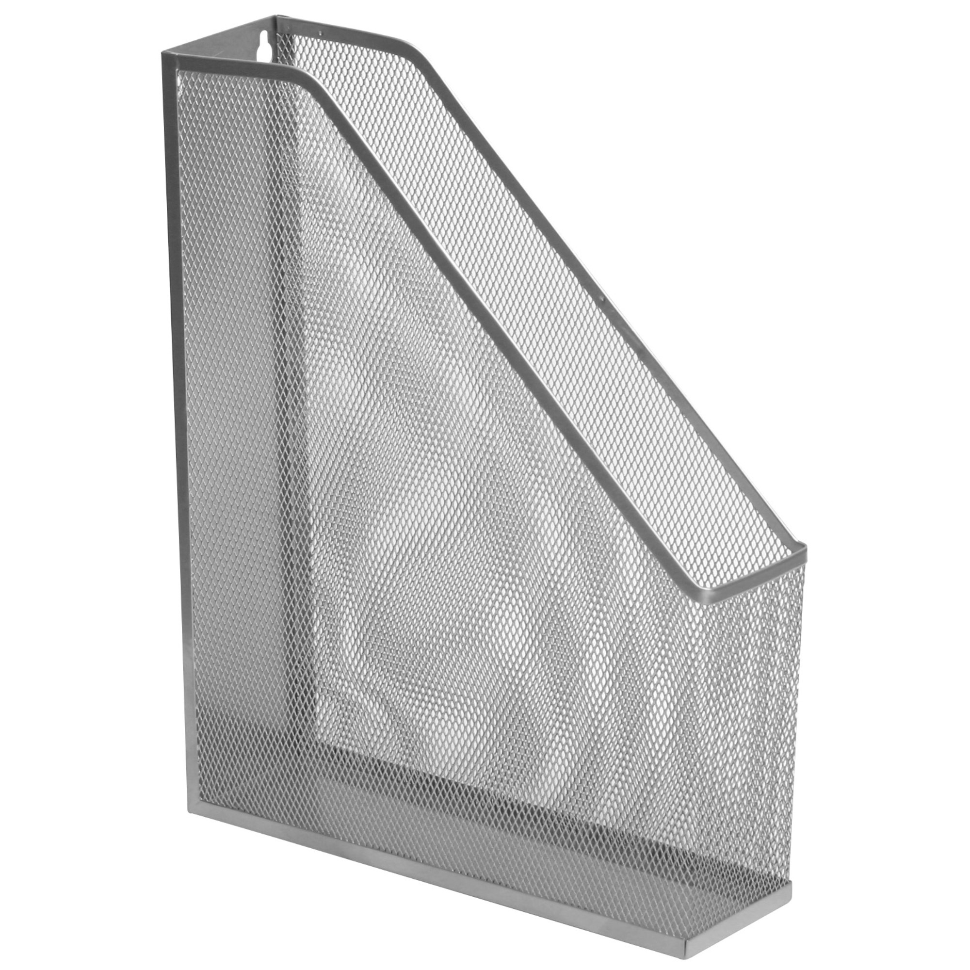 Kovový stojan na časopisy, katalógy a papiere do formátu A4+. Otvory pre možnosť upevnenia na zvislé povrchy.
