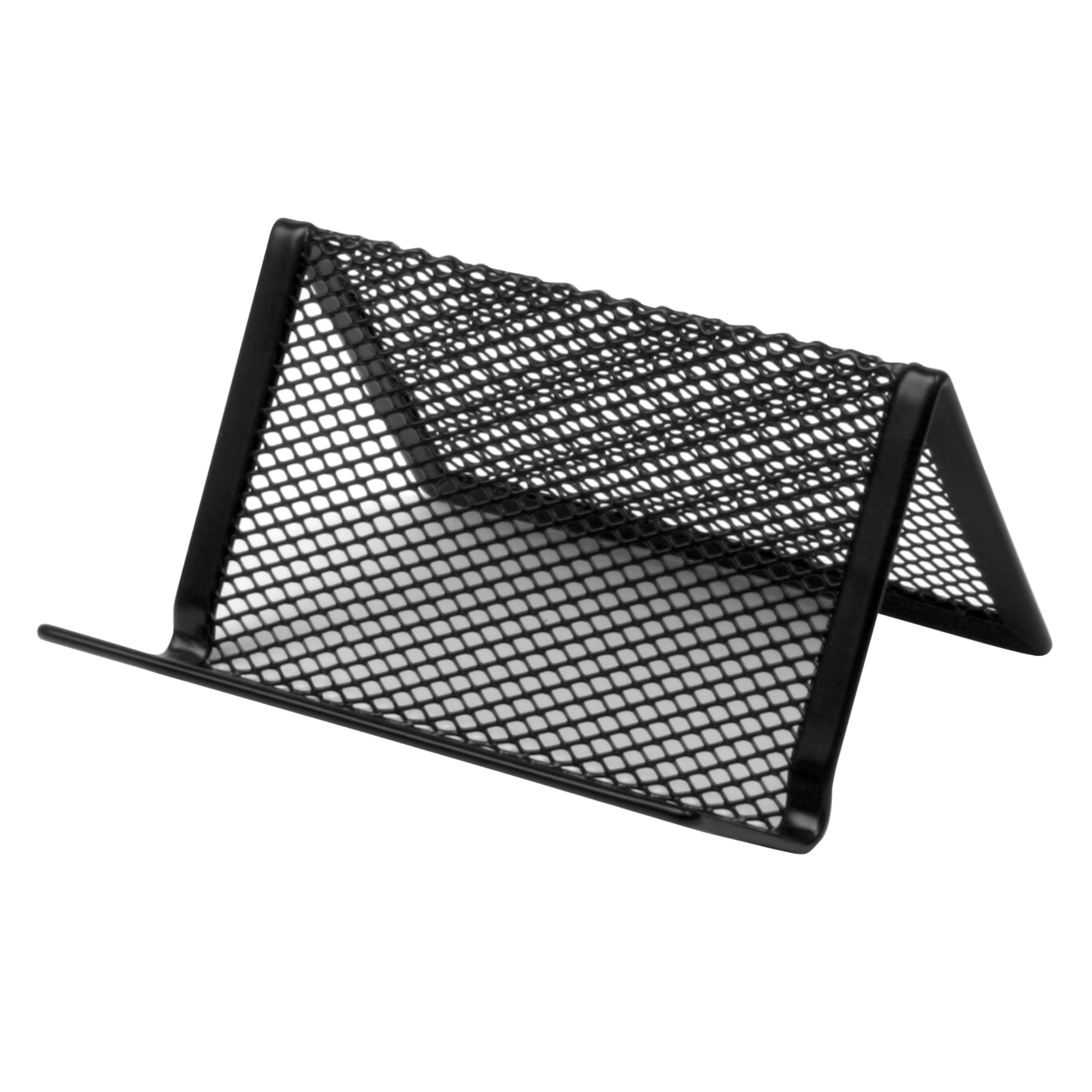 Kovový stolový organizér na usporiadanie pracoviska. Má 2 vertikálne priehradky na písacie potreby a 2 priehradky na drobné kancelárske doplnky ako sponky atď. záložky. Vyrobené z kovovej sieťoviny pokrytej čiernym pálenou farbou. Rozmery: 154 x 103 x 103 mm