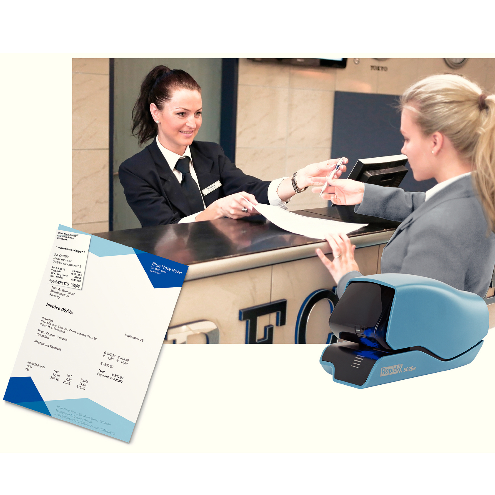 Používa kazetu so spinkami 5025 Patentovaná technológia kazetového zošívania pre bezproblémové časté používanie, napríklad na hotelových recepciách a pri pokladniciach. Vodiaci systém LED presne ukazuje, kde bude spinka umiestnená. Ploché zošívanie – znižuje stohy papiera o 30 %