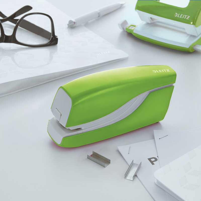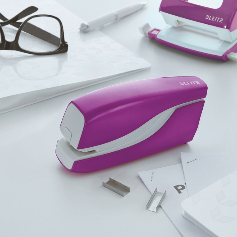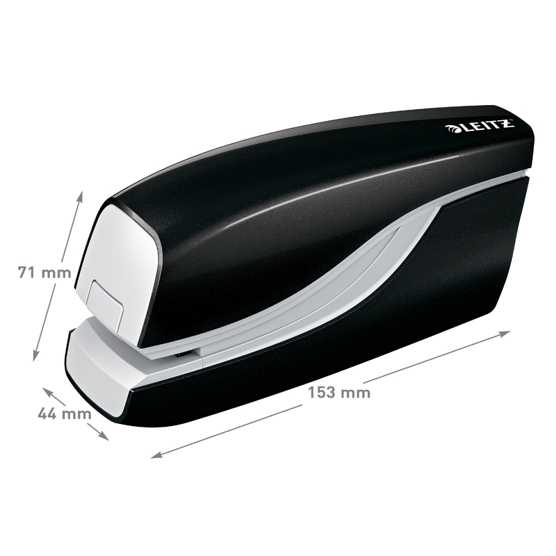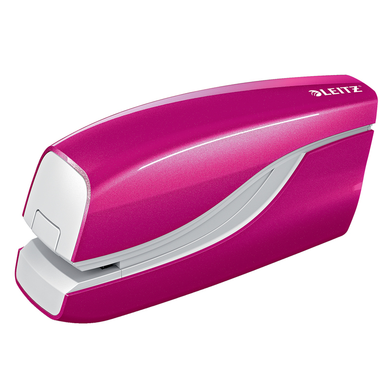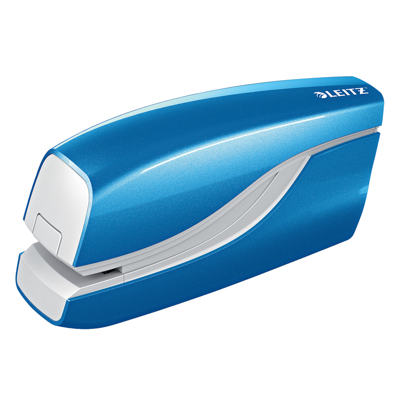 Elektrická zošívačka na batérie pre perfektné zošívanie do 10 listov 80g papiera. Je ľahko ovládateľná aj bez dotyku rukou, vhodná pre časté používanie. Hygienické zošívanie vďaka bezkontaktnému použitiu. Dostupné v nápadných farbách Leitz WOW, ktoré nechajú vyniknúť vašu osobnosť. Je napájaná z batérii (4x AAA batérie LR03, nie sú súčasťou dodávky). Záruka 3 roky pri použití sponiek Leitz. Používa spinky E1 obj číslo 556800. Farba modrá