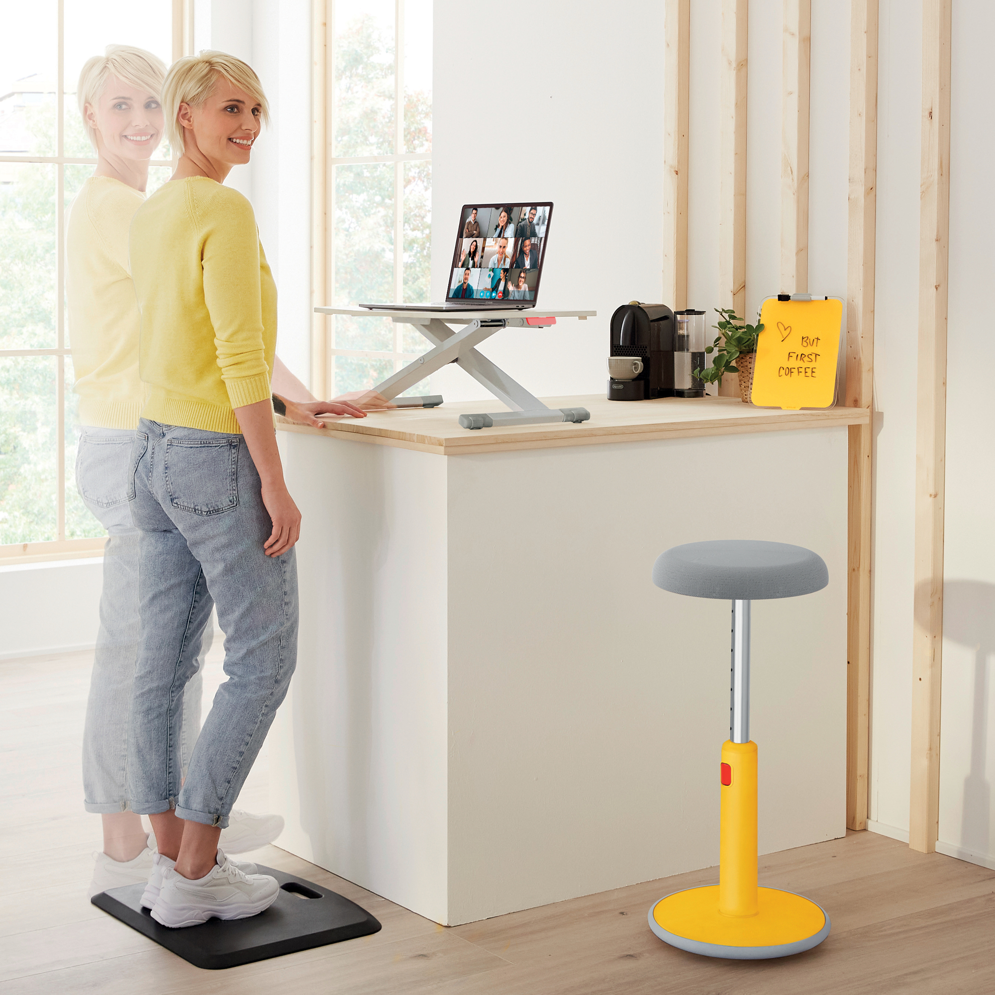 Pracovná stolná doska pre prácu v sede alebo v stoji. Umožňuje flexibilne meniť pracovnú polohu medzi sedením a státím. Vďaka malým rozmerom je ľahko prenosná, umožňuje vytvoriť ergonomicky vhodné pracovisko prakticky kdekoľvek. Podporuje pohyb svalov, zlepšuje držanie tela a zvyšuje hladinu energie. Pneumaticky asistované nastavenie bez námahy zdvihne dosku stola do požadovanej výšky. Tento štýlový pracovný „stôl na stole“ s minimalistickým a moderným dizajnom zlepší vaše zdravie a pohodu. Pomôže vytvoriť ideálne aktívne pracovné prostredie práve pre vás. V kombinácii s ostatnými výrobkami Leitz Ergo získate príjemný a flexibilný pracovný priestor, ktorý vás udrží v pohybe a pohode po celý deň.
