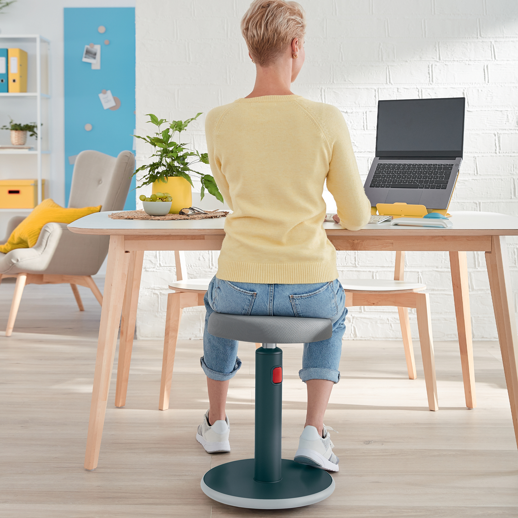 Ergonomická stolička Leitz Ergo prvotriednej kvality umožňuje flexibilný pohyb medzi sedením a státím pri práci. Podporuje pohyb svalov, zlepšuje držanie tela a zvyšuje hladinu energie. Striedanie sedenia a státia pri práci podporuje prirodzený pohyb svalov a minimalizuje negatívne účinky sedenia. Zaoblená základňa podporuje aktívny pohyb otáčaním a hojdaním. Lahko nastaviteľná výška v rozmedzí 45–79 cm pričom stolička zostáva pevná a stabilná v akejkoľvek polohe. Praktická a pohodlná stolička má sedadlo vyrobené z priedušnej 3D peny. Protišmykovú základňa je vyrobená z materiálu, ktorá nepoškodí podlahu. Stoličku Leitz Ergo kombinujte s ďalšími výrobkami Leitz Ergo a získajte pohodlný a flexibilný pracovný priestor, ktorý vás udrží v pohybe a pohode po celý deň. Nosnosť až 110kg. Záruka 5 rokov. Rozmer 370 x 690 x 370 (mm). Váha 5,5kg