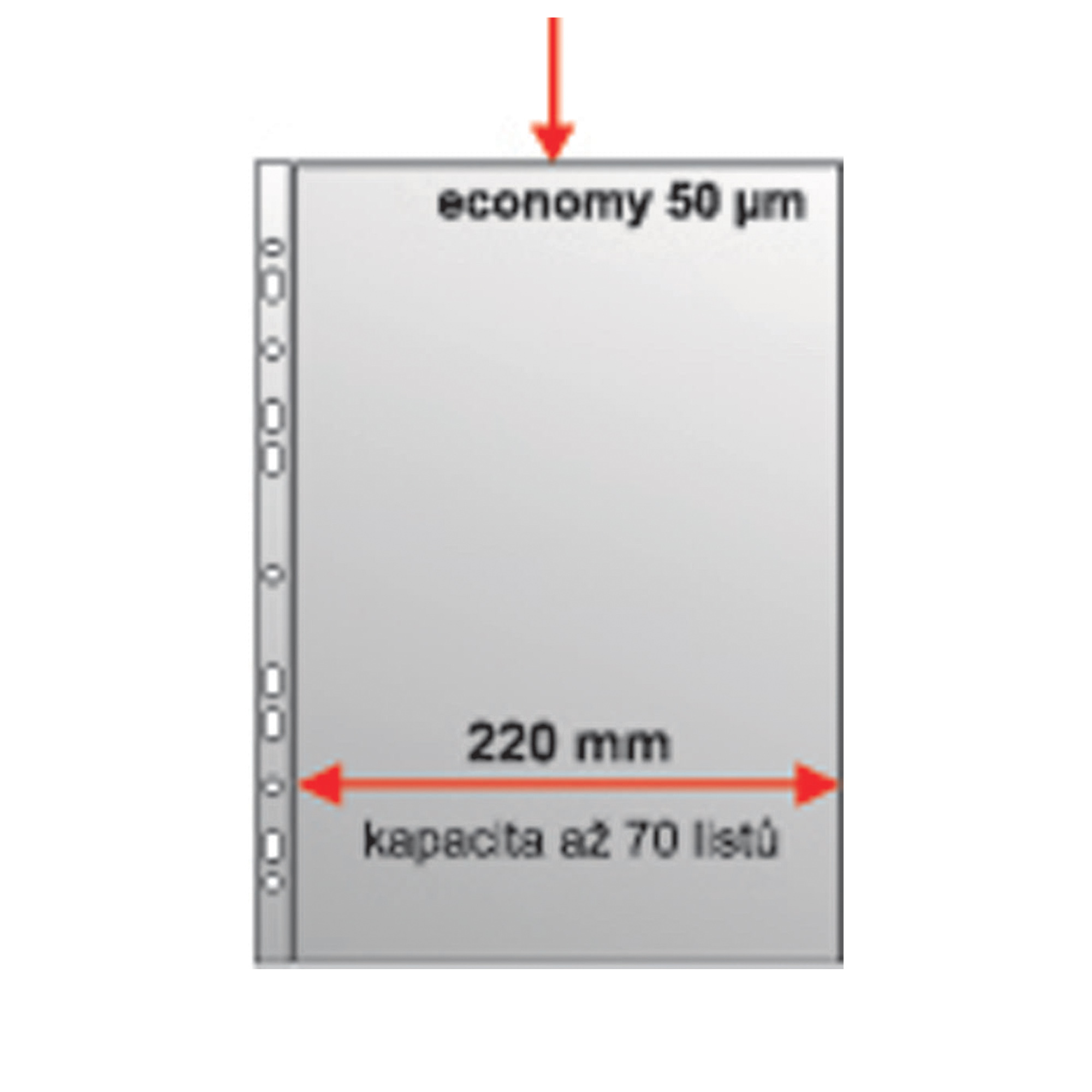 Vďaka univerzálnym dierkam je vhodný na zavesenie do krúžkových aj pákových zakladačov. Dokumenty sa jednoducho vkladajú zhora, čo zaručuje rýchlu manipuláciu a pohodlné používanie. Obal je vyrobený z matného polypropylénu – krupičky s hrúbkou 50 mic, Balenie 50ks.