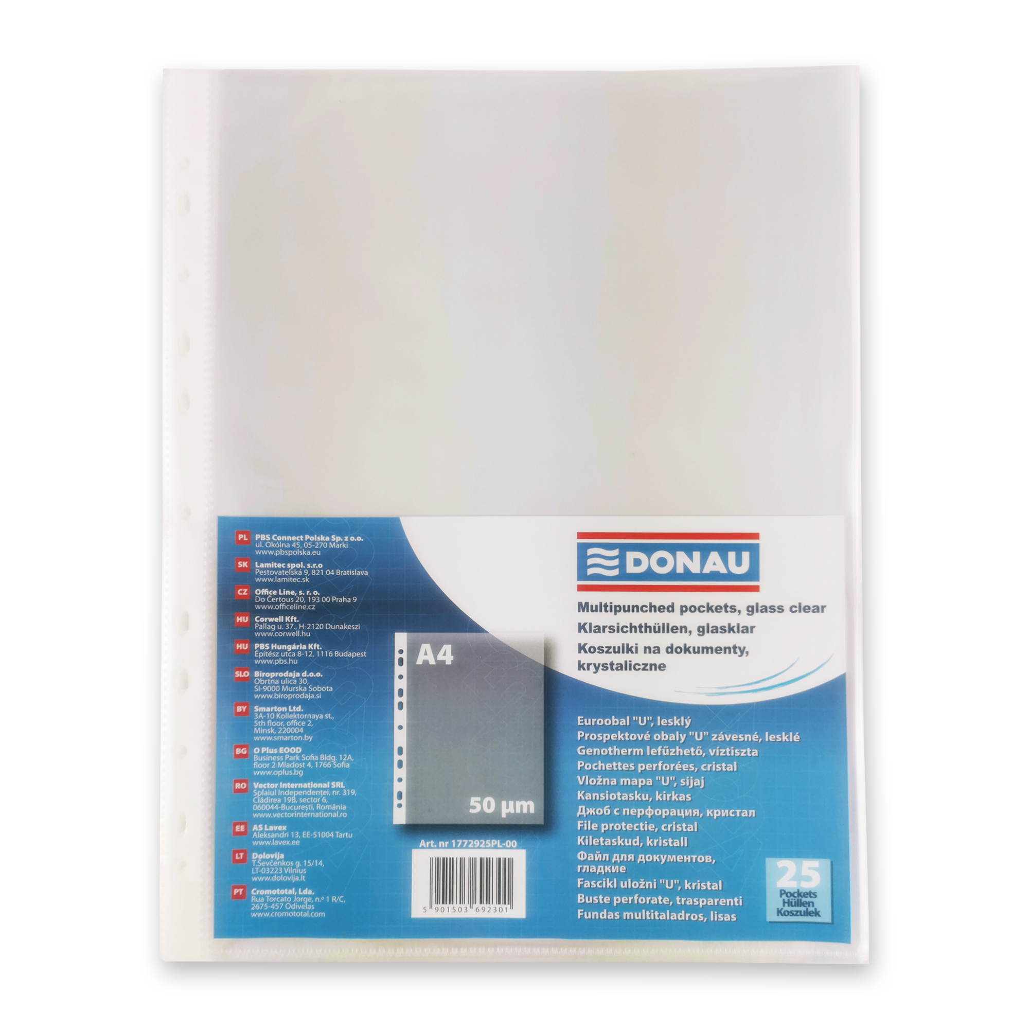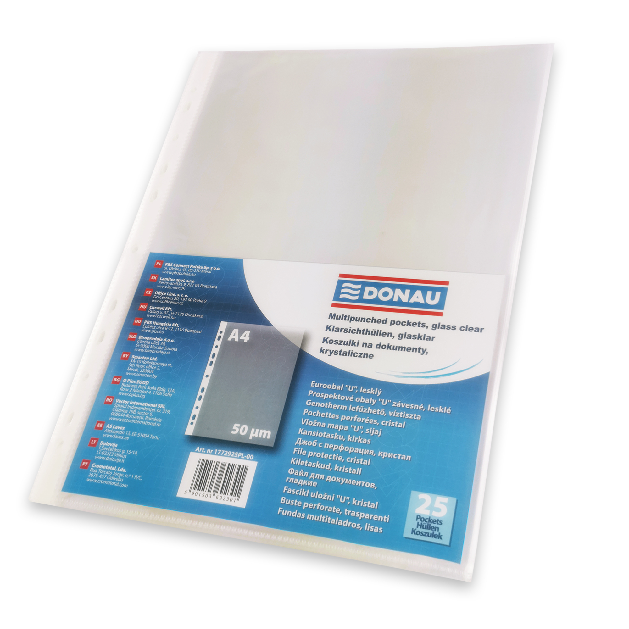 Pevný hladký euroobal A4 s čírym kryštalickým povrchom. Hrúbka 50 mic. Vyrobené z lesklého antistatického polypropylénu. Balenie v sáčku 25ks.