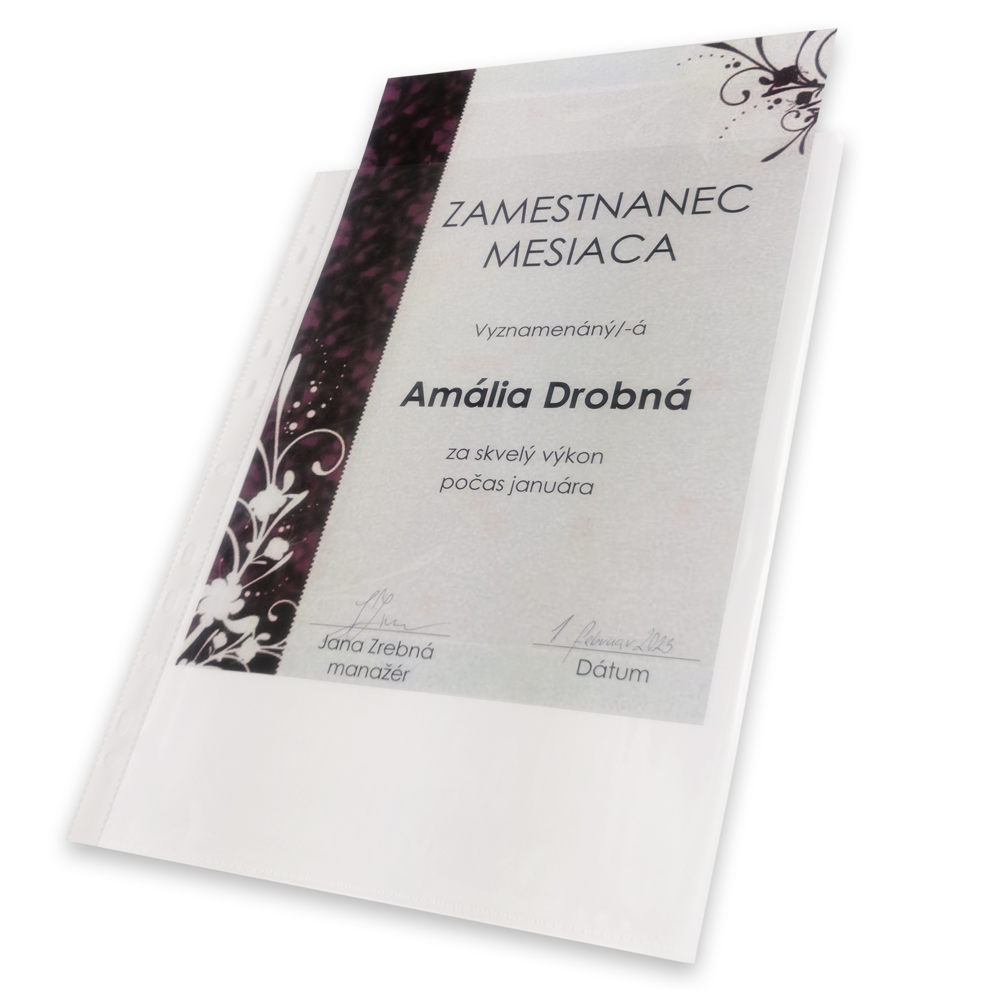 Číry hladký euroobal v lesklom prevedení značky Office product. Formát A4, hrúbka 50mic, balenie 100ks.