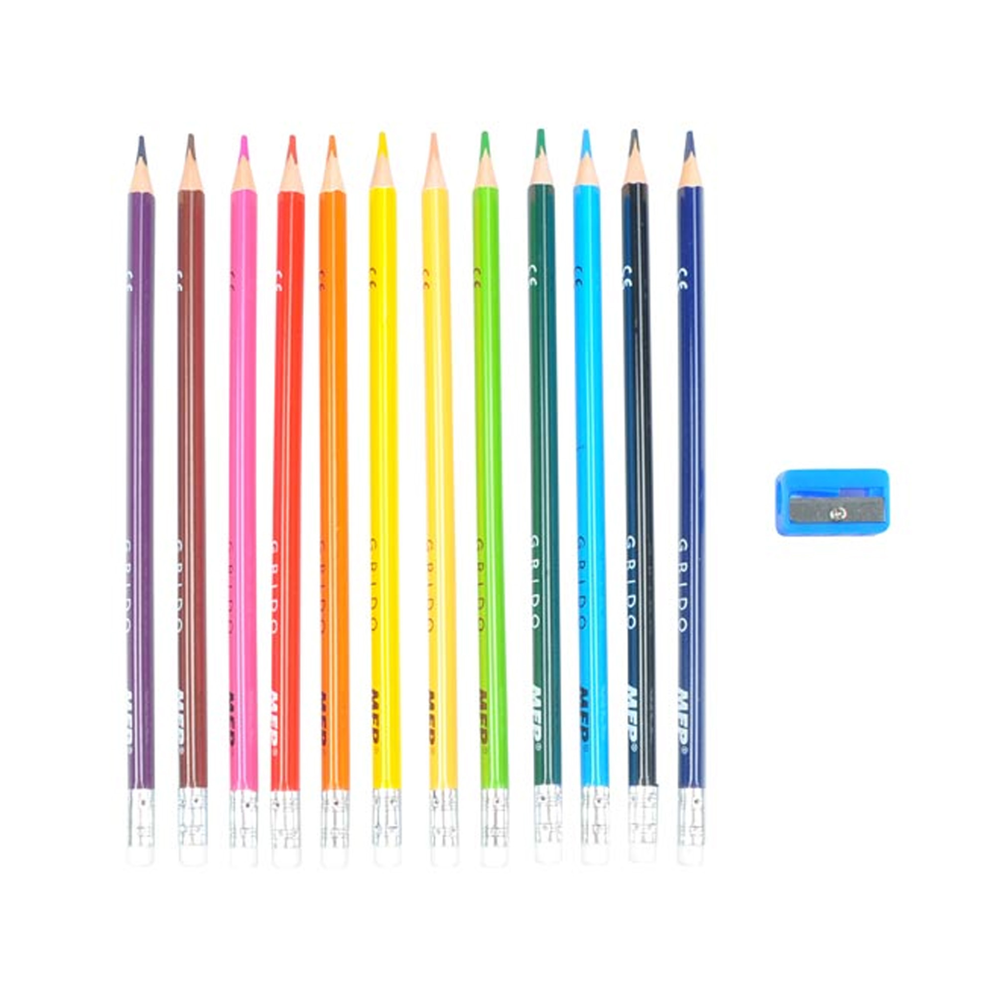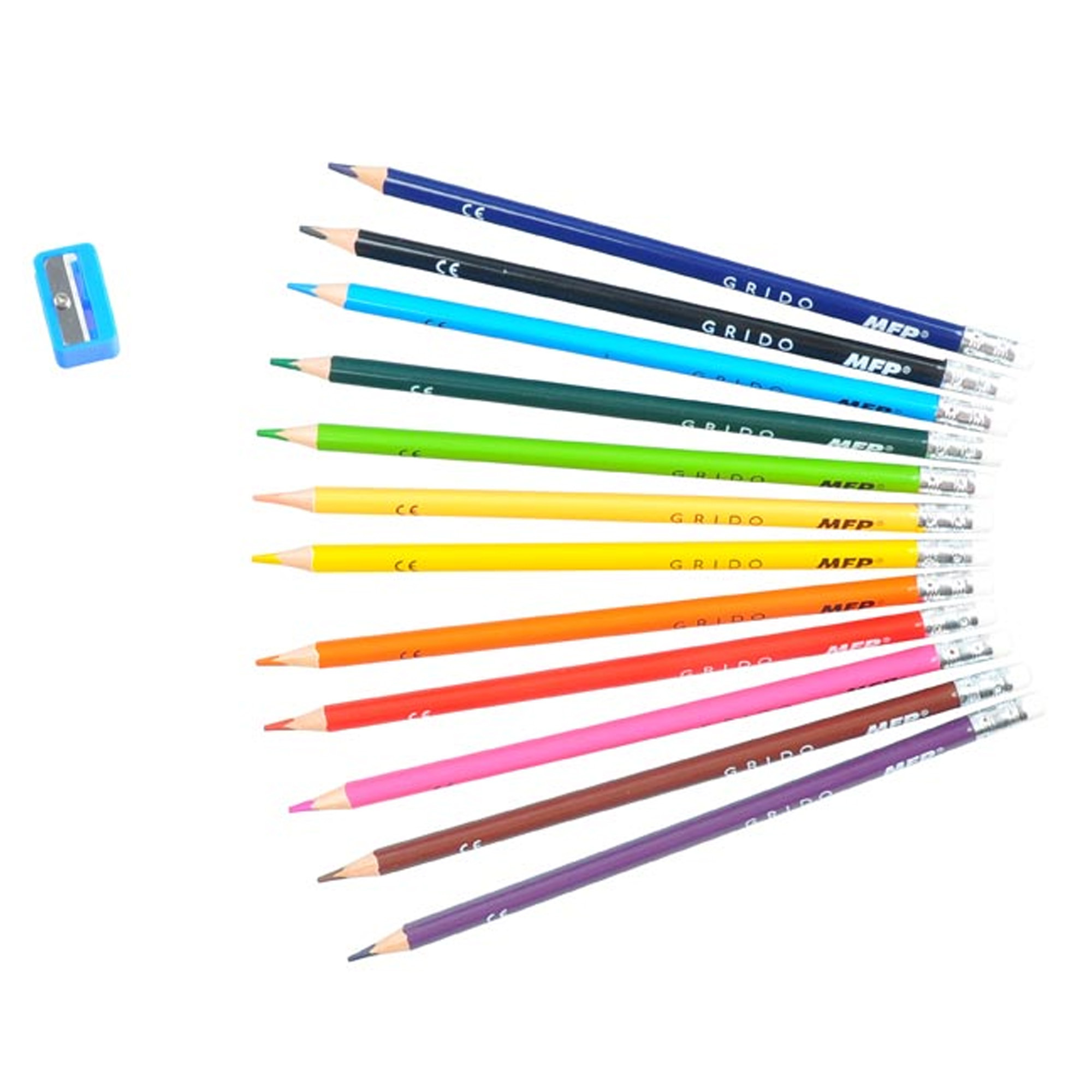 Farebné ceruzky s gumou a orezávačom MFP GRIDO 12ks 6300587