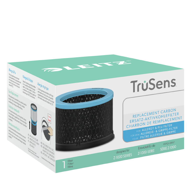 Antialergénny HEPA filter do čističky vzduchu Leitz Trusen Z-1000. Najlepší filter proti alergiám a chrípkovým ochoreniam. Filter 3 v 1 kombinovaný na alergie a vírusy je zložený z 3 vrstiev – odolný predfilter, antivírusový HEPA filter a uhlíková vrstva ktorá redukuje pach a prchavé plyny. 360° filtrácia nasáva vzduch zo všetkých strán a tak zachytí až 99,97% alergénov a vírusov vr. chrípkového vírusu H1N1 z celej miestnosti. HEPA filter s antivírusovým povlakom má účinnosť zachytávania škodlivých mikročastíc (od 0,3 mikrónu) až 99,97 %.Vhodné pre čističku vzduchu Leitz TruSens Z-1000.