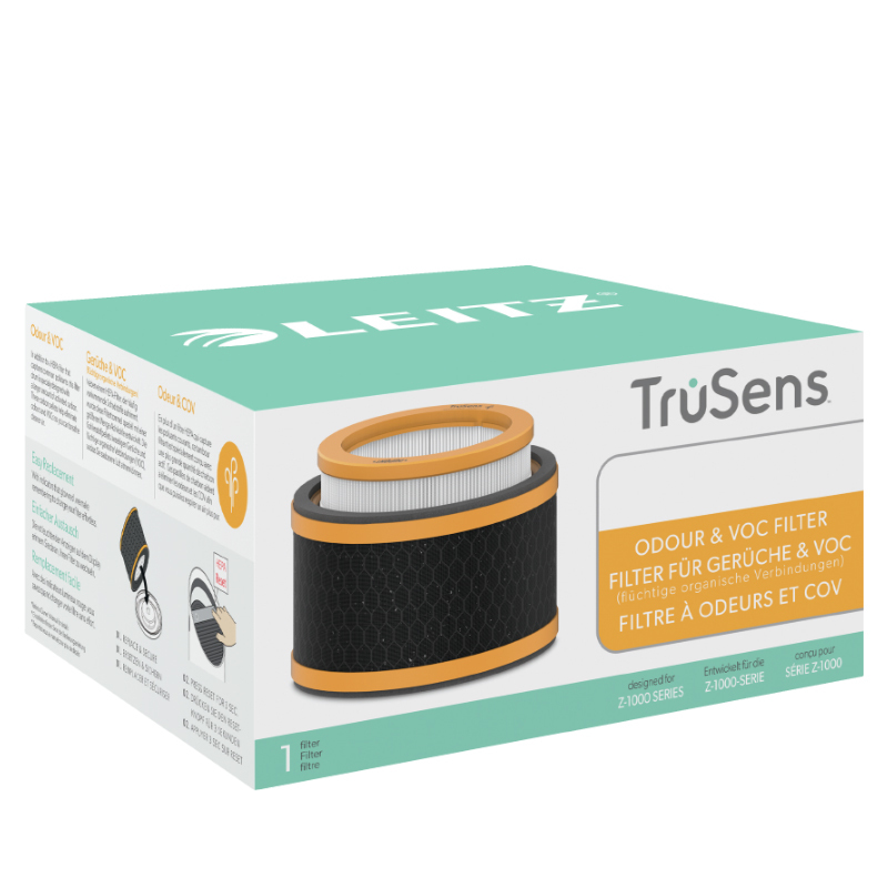 Náhradný protipachový HEPA filter 3 v 1 pre čističku vzduchu Leitz Trusen Z-1000. Tento filtračný systém typu „všetko v jednom“ a 360-stupňová filtrácia nasávaním vzduchu zo všetkých strán zachytáva znečisťujúce látky z celej miestnosti. Účinne zachytáva pachy vznikajúce pri varení a priemyselnom čistení, obmedzuje vo vzduchu obsah prchavých organických látok, ako je amoniak, acetón a formaldehyd. HEPA filter navyše zachytáva 99,97 % bežných znečisťujúcich látok vo vzduchu. Tento kombinovaný filter má 3 úrovne filtrácie na likvidáciu pachov a prchavých látok vo vzduchu; odolný predradený filter, antivírusový HEPA filter a filter s aktívnym uhlím. Filtračný bubon je centrálnym miestom čistenia vzduchu. Pre spoľahlivé fungovanie čističky vzduchu odporúčame vymieňať filtračný HEPA bubon každých 12 mesiacov (v závislosti od používania). Kompatibilný so všetkými čističkami vzduchu Leitz TruSens Z-1000..
