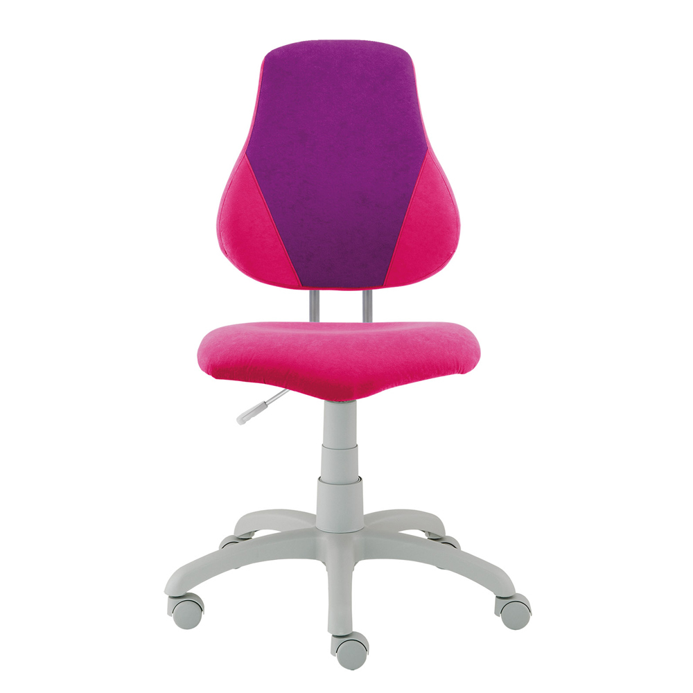 Pohodlná ergonomická stolička dôrazom pre zdravé sedenie. Vďaka unikátnemu polohovaciemu systému stolička Fuxo je vhodná pre všetky deti približne od 4 rokov. Od tohto veku deti sedia stále viac pri písacom stole a súčasne (i keď nevedomky) sa učia správnemu sedeniu. Poťah odolný voči predratiu vo farebnej kombinácii SU41 ružová - SU22 fialová v tvare V-line. Ako voliteľné príslušenstvo na stoličky sa dajú namontovať aj opierky rúk. Stolička je vybavená s kolieskami pr.50 mm pre mäkké podlahy. Nosnosť stoličky je až 100kg. Záruka 5 rokov.