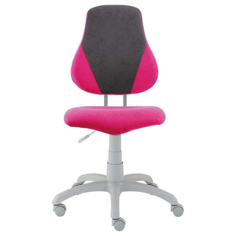 Pohodlná ergonomická stolička dôrazom pre zdravé sedenie. Vďaka unikátnemu polohovaciemu systému stolička Fuxo je vhodná pre všetky deti z hruba od 4 rokov. Od tohto veku deti sedia stále viac pri písacom stole a súčasne (i keď nevedomky) sa učia správnemu sedeniu. Poťah odolný voči predratiu vo farebnej kombinácii SU41 ružová - SU24 šedá v tvare V-line. Ako voliteľné príslušenstvo na stoličky sa dajú namontovať aj opierky rúk. Stolička je vybavená s kolieskami pr.50 mm pre mäkké podlahy. Nosnosť stoličky je až 100kg. Záruka 5 rokov.