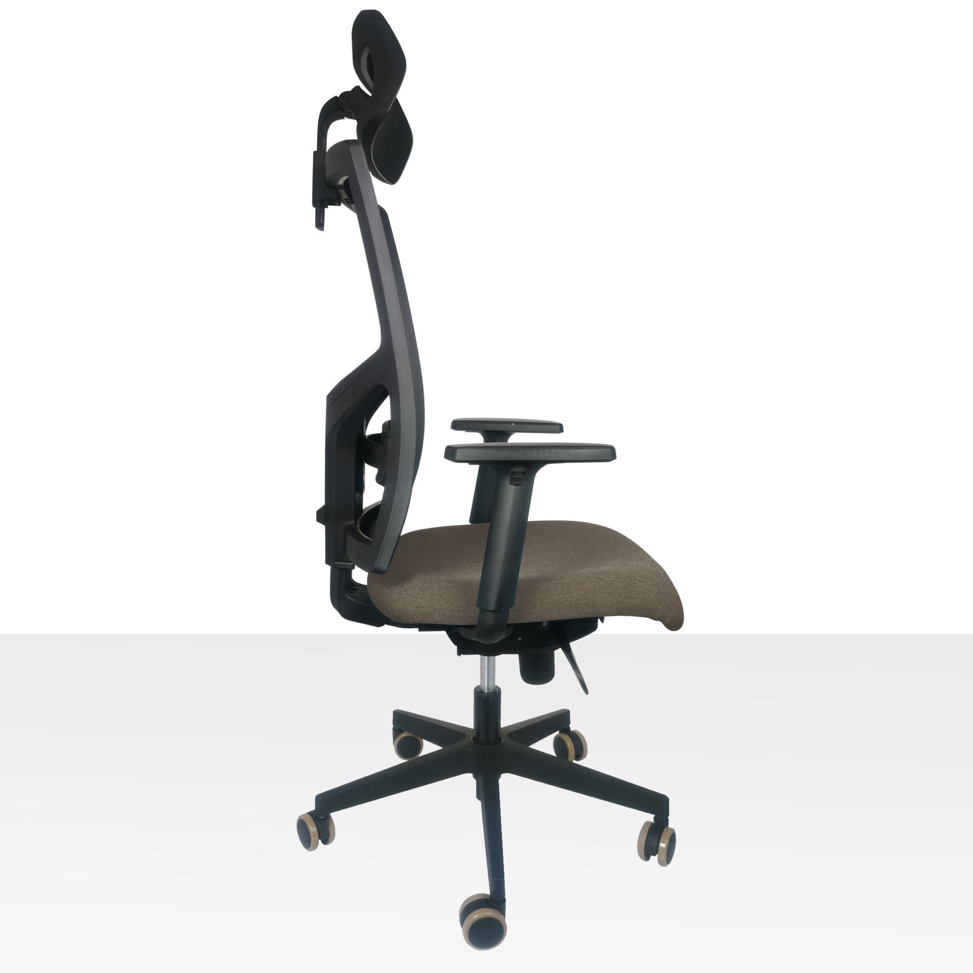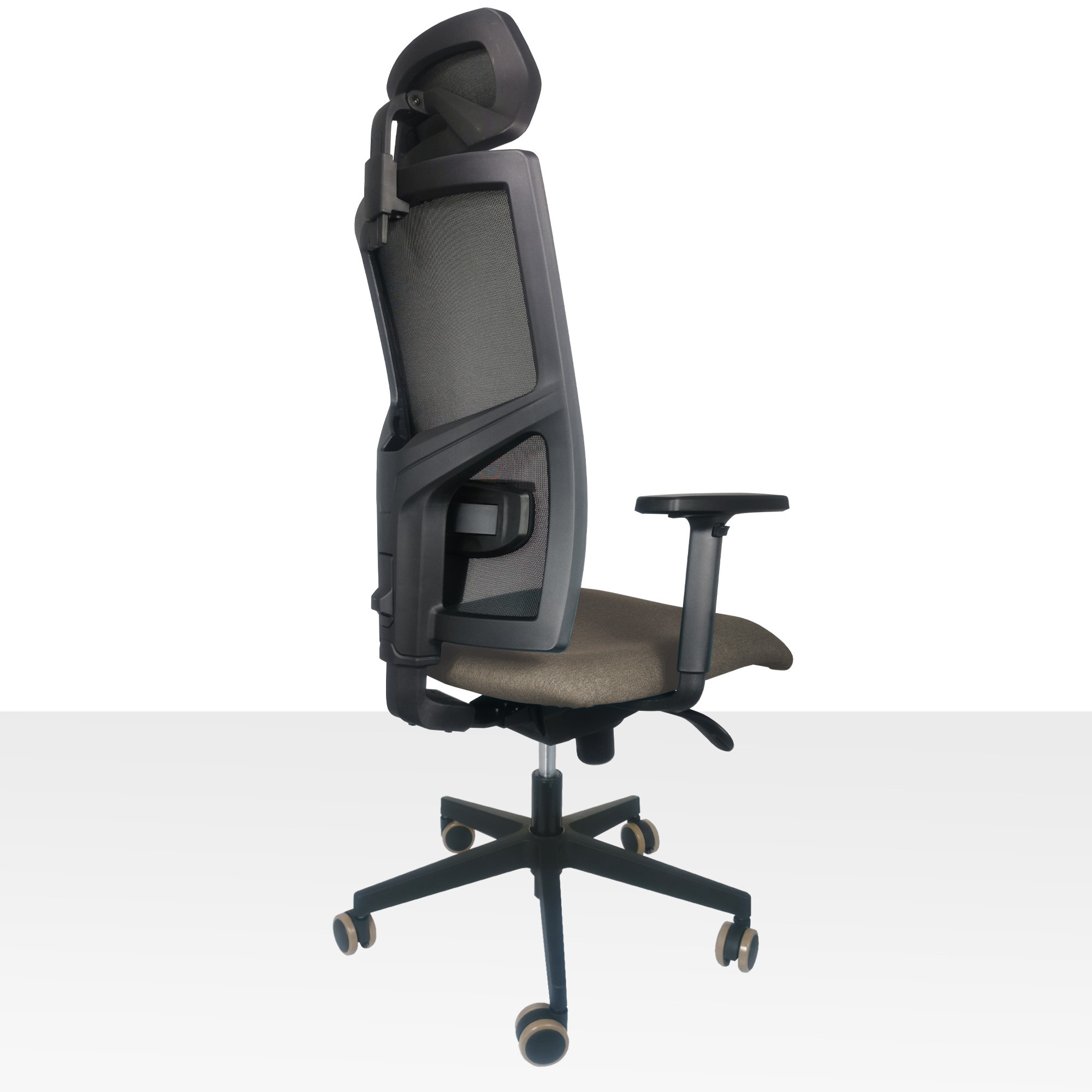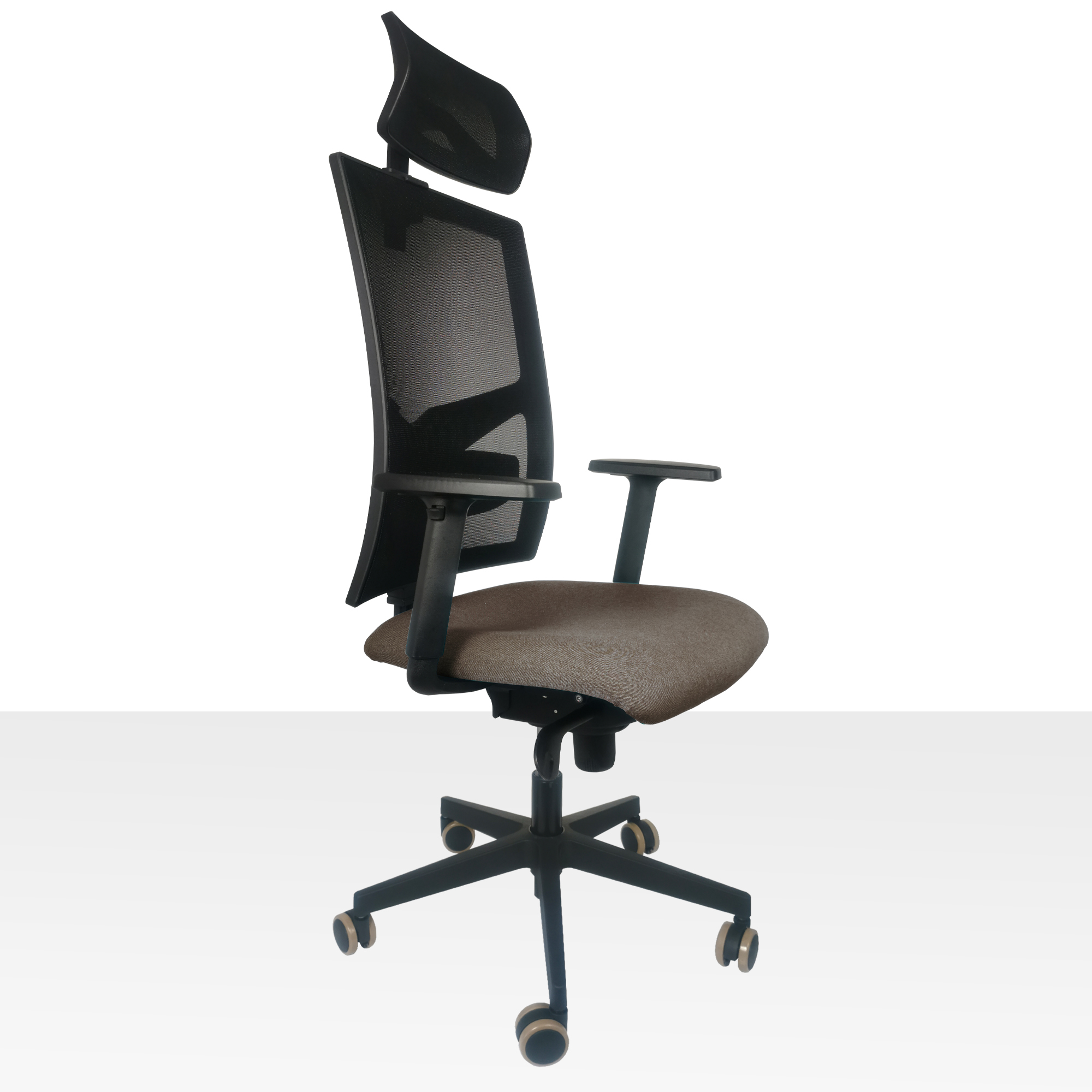 Kancelárska stolička vyššej rady. Má výškovo nastaviteľnú sieťovú opierku a synchro mechaniku s nosnosťou do 150 kg. Má tiež samostatne výškovo nastaviteľnú bedrovú opierku. Sedadlo je vyrobené z molitanu pre vyššiu záťaž, čalúnené s látkou Bombay 34 s odolnosťou voči predraniu 100 000 cyklov. Šírka sedadla 53 cm. Čierny nylonový kríž pr. 64cm pre vyššiu záťaž. Veľké pogumované kolieska pr.65 mm vhodné na všetky povrchy. Stolička je dodávaná čiastočne zmontovanom stave. Váha stoličky 18kg. Cena stoličky je uvedená v základnej zostave bez podrúčok a podhlavníka - možno ich objednať ako doplnok. (Podrúčky P41 a Podhlavník 3D)