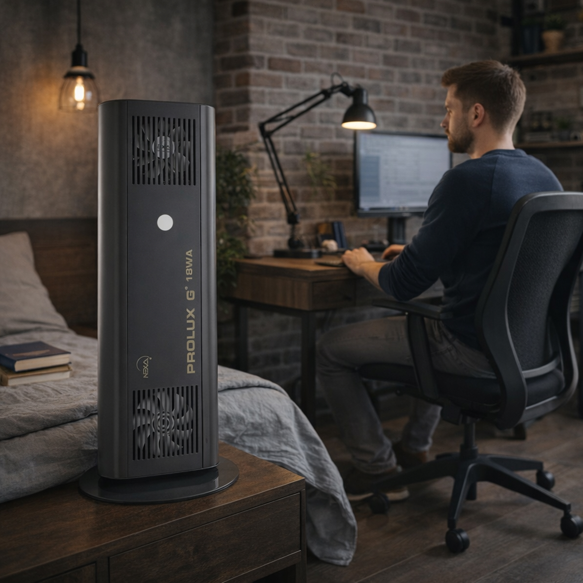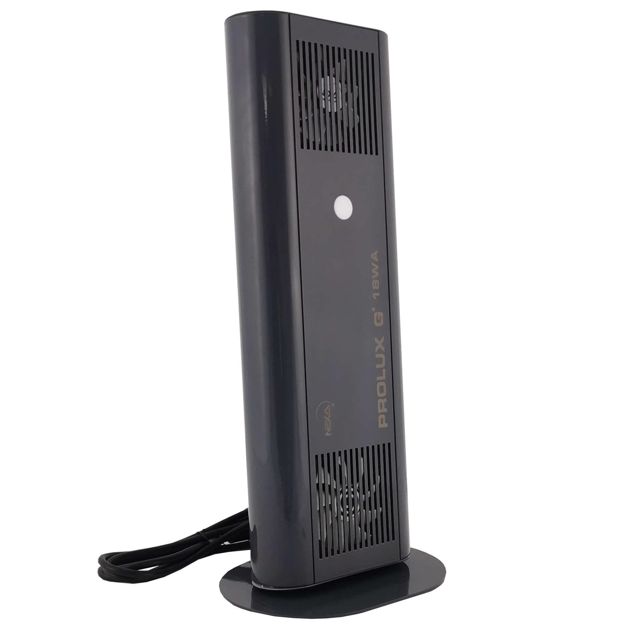 V súčasnosti germicídne žiariče PROLUX G18W sú jedným najpredávanejším zariadením na boj proti vírusom a pandémii v celej Európe. Sú určené najmä do uzavretých priestorov ako sú ordinácie, lekárne, kancelárie, menšie obchody, domácnosti a všade tam, kde je riziko nákazy. Stolový model vertikál,” prevádzka stojato ” aj z pohľadu dizajnu je skvelým riešením na čistenie vzduchu v domácom prostredí. Nepriamo vyžarujúce, uzavreté UVC žiariče PROLUX G boli navrhnuté tak, aby ich použitie bolo bezpečné aj bezprostrednej blízkosti ľudí, domácich miláčikov či rastlín. Germicídne žiariče PROLUX G sú skúšané a overované akreditovanou skúšobňou na EMC a LVD testy. Sú overené klinickými skúškami a klinickými hodnoteniami. Nakoľko je to Slovenský výrobok, záručný aj pozáručný servis je samozrejmosťou. „Dovoľujeme si Vás informovať, že výrobky - germicídne žiariče s označením PROLUX G® sú určené na profesionálne použitie najmä v zdravotníckych zariadeniach, nie sú určené bežnému spotrebiteľovi a ich kúpa je umožnená výlučne fyzickým alebo právnickým osobám, vykonávajúcim podnikateľskú činnosť (s IČO m) a môžu byť uvedené do prevádzky a používané len osobami s príslušným vzdelaní, praxou a školením výrobcom. Akékoľvek objednávky inou osobou nebudú vybavené a budú odmietnuté.“
