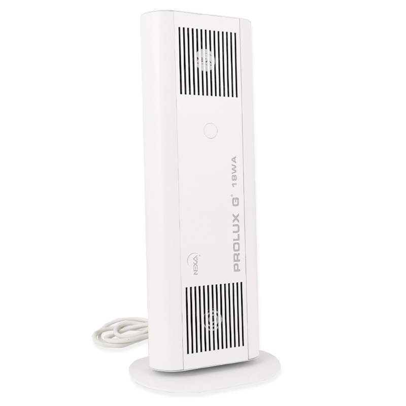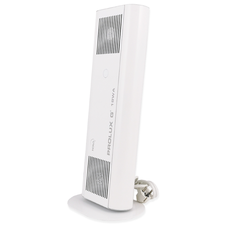 Veľmi účinné stolové zariadenie (vertikál) na likvidáciu všetkých mikroorganizmov a baktérií vo vzduchu za prítomnosti ľudí. V súčasnosti germicídne žiariče PROLUX G18W sú jedným najpredávanejším zariadením na boj proti vírusom a pandémii v celej Európe. Sú určené najmä do uzavretých priestorov ako sú ordinácie, lekárne, kancelárie, menšie obchody, domácnosti a všade tam, kde je riziko nákazy. Stolový model vertikál,” prevádzka stojato ” aj z pohľadu dizajnu je skvelým riešením na čistenie vzduchu v domácom prostredí. Nepriamo vyžarujúce, uzavreté UVC žiariče PROLUX G boli navrhnuté tak, aby ich použitie bolo bezpečné aj bezprostrednej blízkosti ľudí, domácich miláčikov či rastlín. Germicídne žiariče PROLUX G sú skúšané a overované akreditovanou skúšobňou na EMC a LVD testy. Sú overené klinickými skúškami a klinickými hodnoteniami. Nakoľko je to Slovenský výrobok, záručný aj pozáručný servis je samozrejmosťou.