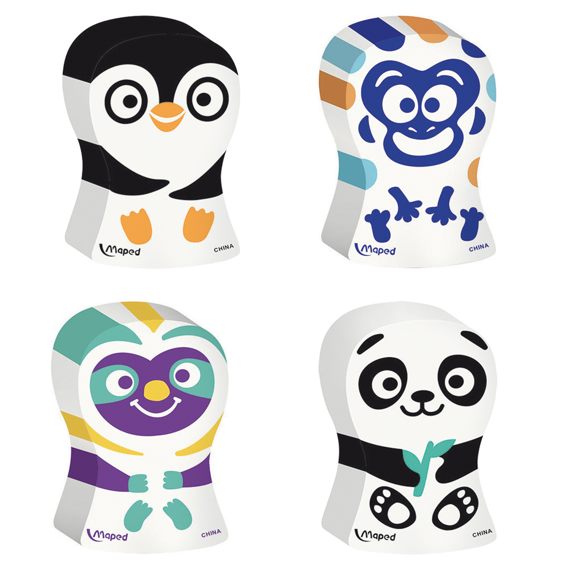 Guma Maped Ergo Fun je k dispozícii v štyroch farebných prevedeniach s detskými motívmi. Má ergonomický úchop, ktorý je prispôsobený pre detské ruky. Je vhodná na jemné mazanie aj na úpravu veľkých plôch, čo umožňuje rôznorodé použitie pri kreslení a písaní. Guma je dodávaná v mixe rôznych motívov.