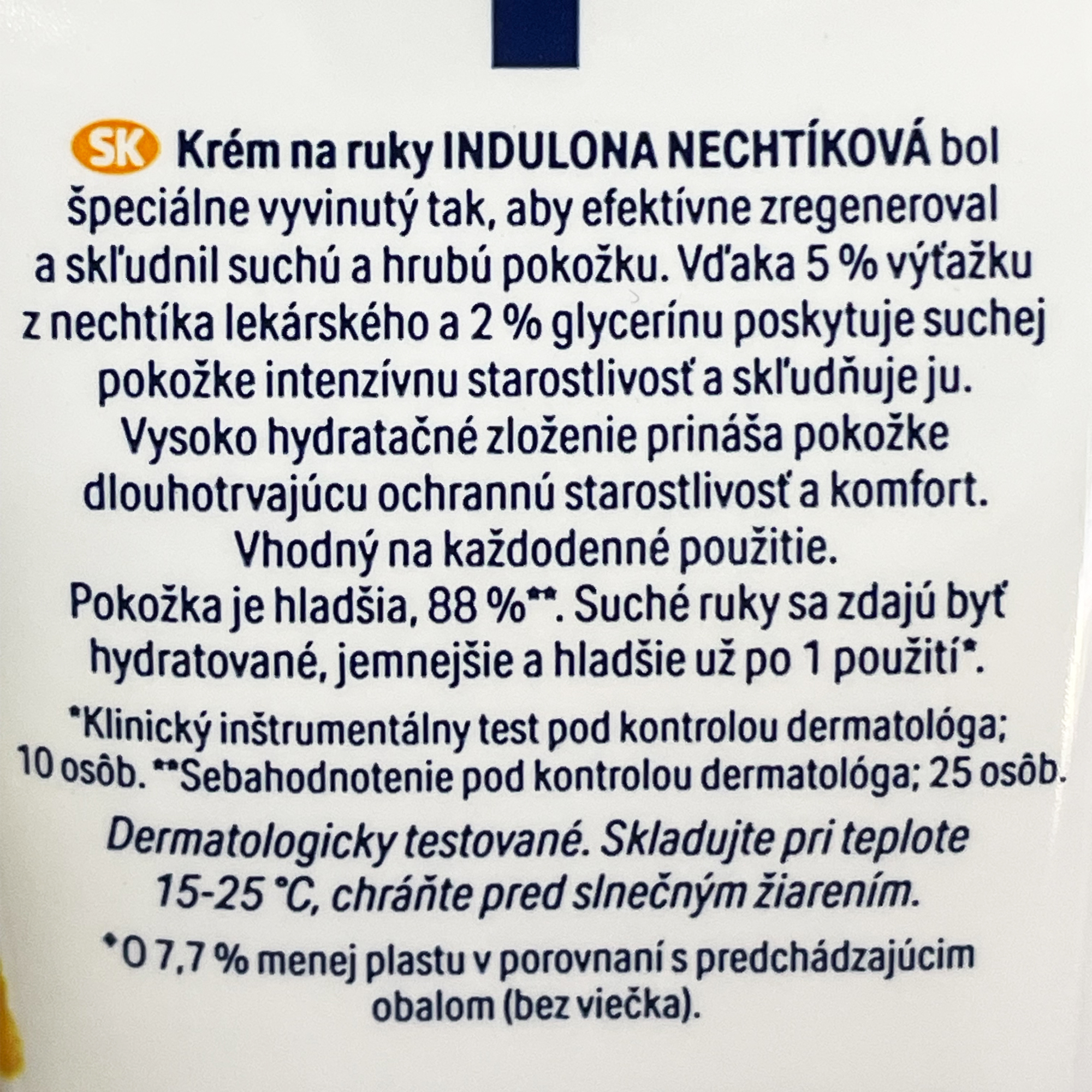 Krém na ruky určený na regeneráciu a upokojenie suchej a hrubej pokožky. Obsahuje 5 % výťažku z nechtíka lekárskeho a 2 % glycerínu, ktoré poskytujú intenzívnu hydratáciu, zmierňujú podráždenie a zanechávajú ruky jemné a hladké. Krém ponúka dlhotrvajúcu ochranu a komfort, je vhodný na každodenné používanie a je dermatologicky testovaný s 24-hodinovou hydratáciou.