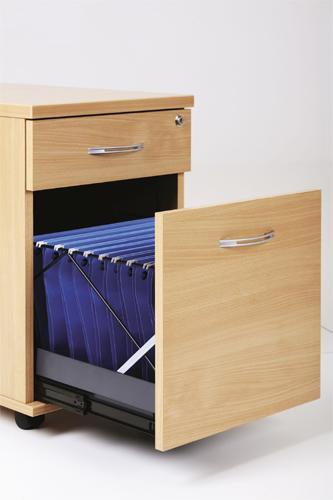 Posuvné mechanizmy zásuviek majú integrovaný systém STOP-CONTROL, čo znamená, že otvorením jednej zásuvky sú ostatné automaticky blokované proti otvoreniu. Tri typy kontajnerov majú centrálne uzamykanie zásuviek a systém STOP-CONTROL. Iba ekonomický model HK 23 je bez zámku a systému STOP-CONTROL. V ponuke sú dva druhy úchytiek. Posadením kontajnera na sokel vyrovnáme výšku kontajnera na výšku stola, čím vytvoríme z kontajnera samostatný stolový prvok a zväčšíme pracovnú plochu stolovej zostavy.