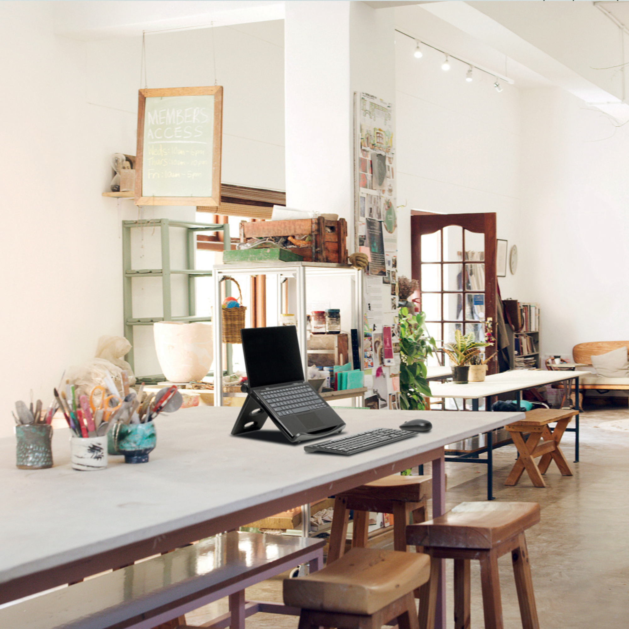 Spoločnosť Kensington má viac ako 20 ročné skúsenosti v odbore ergonómie, a preto jej zverte maximalizáciu priestoru na pracovnom stole s využitím profesionálneho chladiaceho stojančeka pre notebooky. Patentovaný systém SmartFit vám umožňuje použiť dodaný nákres rukou pre určenie vašej farby osobného komfortu a upraviť podľa nej výšku a sklon obrazovky notebooku, aby ste obmedzili zaťaženie chrbta, šije a očí. Stojanček Easy Riser™ zdvihne notebook zo stola, usnadní priechod vzduchu, aby sa zvýšila výkonnosť akumulátora a uvoľnil tlak na interné komponenty. Tri úrovne nastavenia výšky. Univerzálna konštrukcia dosky vyhovie akémukoľvek monitoru až do uhlopriečky 21" a hmotnosti 18 kilogramov. Príslušenstvo a papiere môžete uložiť pod dosku a získať viac miesta na stole. Zodpovedá požiadavkám TSA.