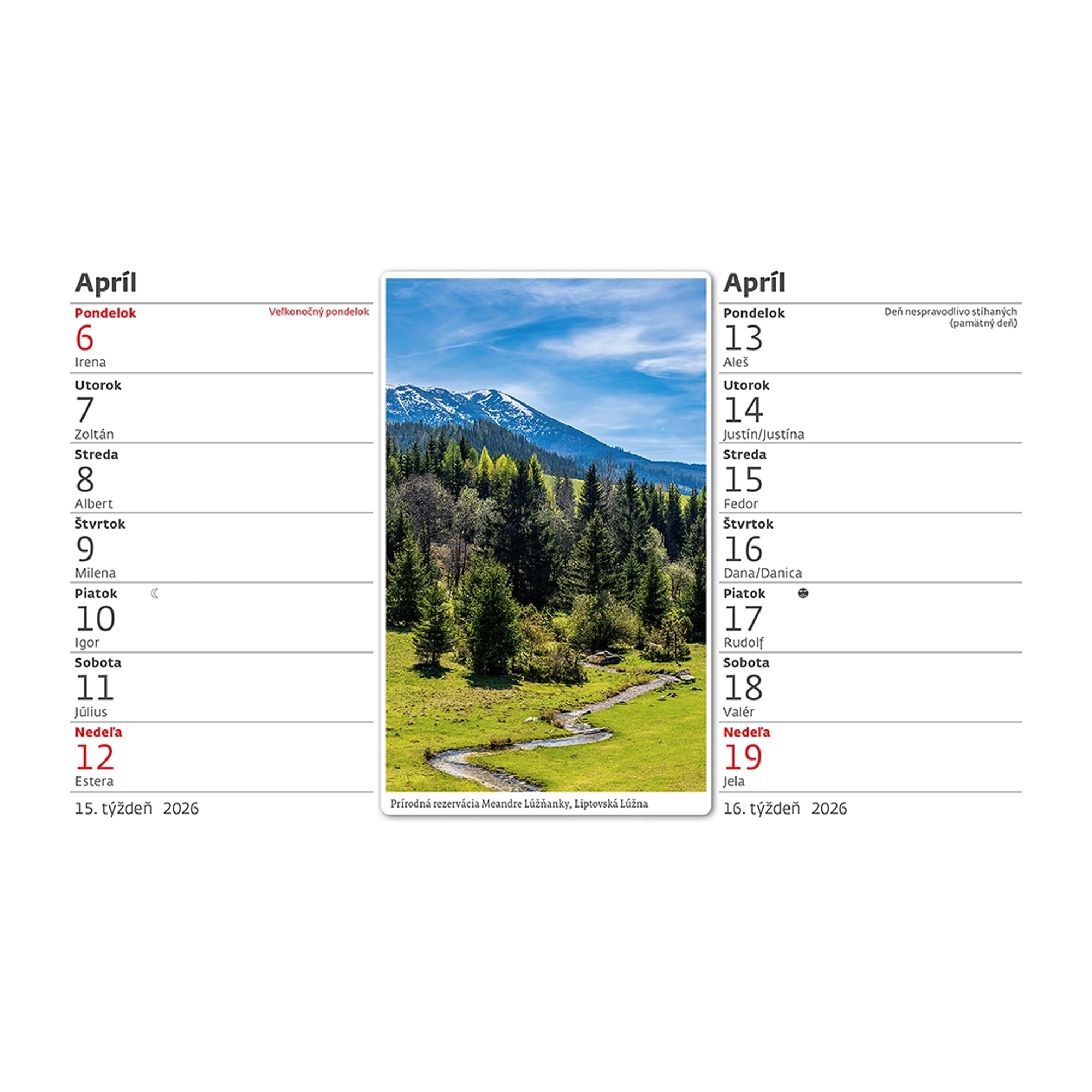 Kalendárium: slovenské dvojtýždenné riadkové kalendárium Počet strán:28x2 strán Formát:22,6x13,9 cm