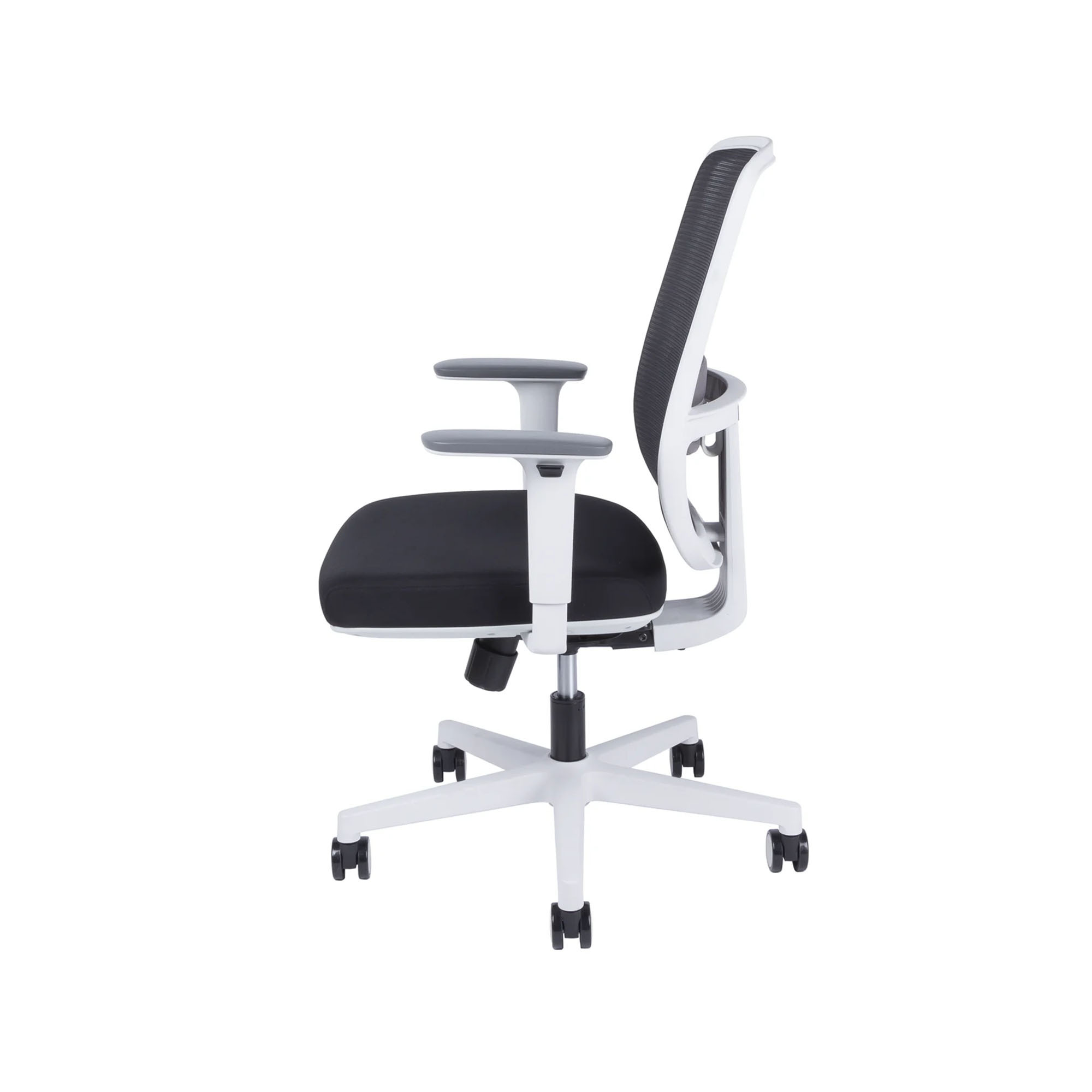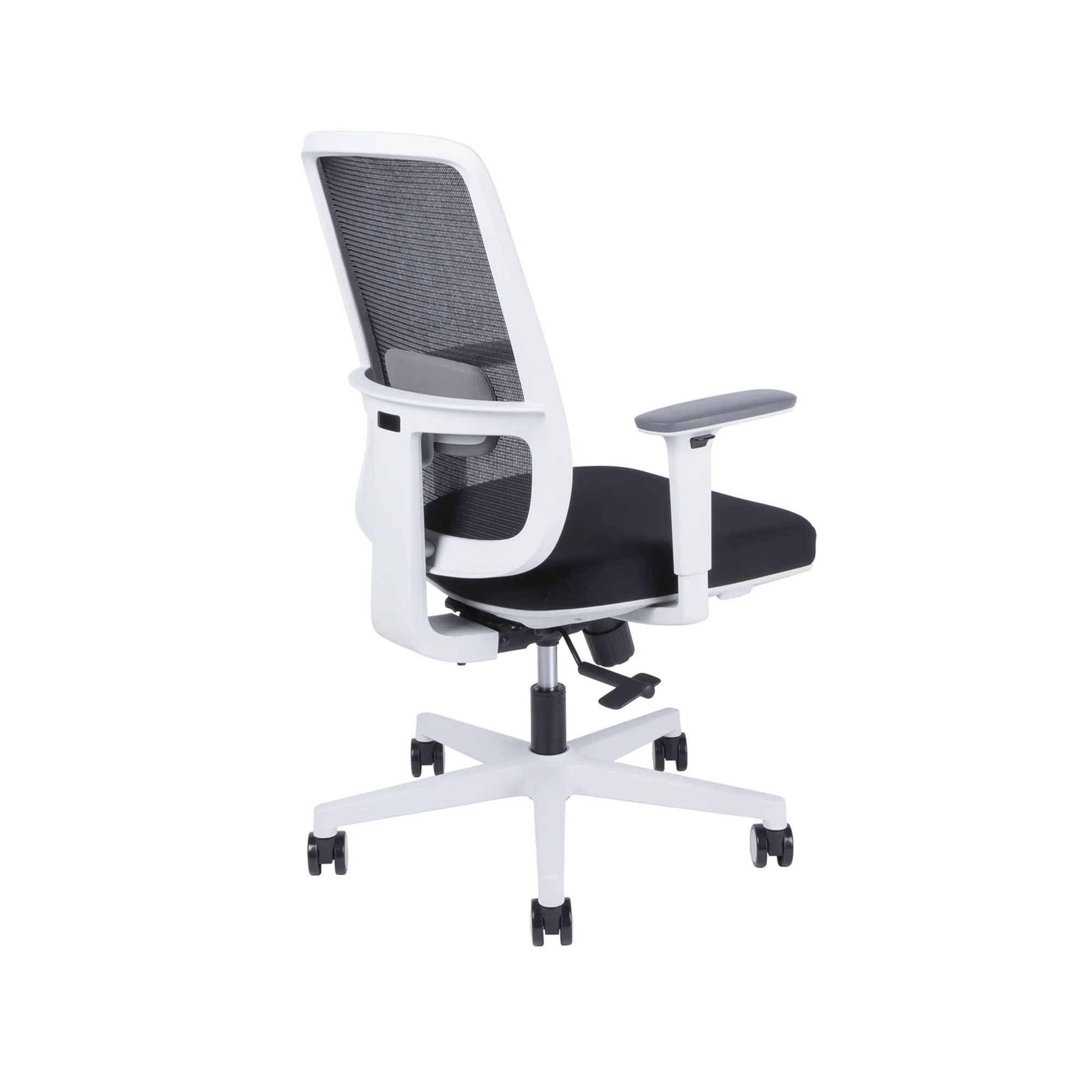 Táto ergonomická stolička s bielou konštrukciou je navrhnutá pre maximálne pohodlie a podporu zdravého sedenia. Vďaka synchrónnemu mechanizmu, ktorým súčasne meníte náklon operadla aj sedadla, je možné jednoducho meniť polohu počas sedenia. Mechanizmus umožňuje zafixovať sedadlo aj operadlo v troch rôznych polohách, čo poskytuje väčšiu flexibilitu a pohodlie. Nosnosť plastového kríža je až 150 kg, čo zaručuje pevnú konštrukciu aj pre náročnejšie použitie.