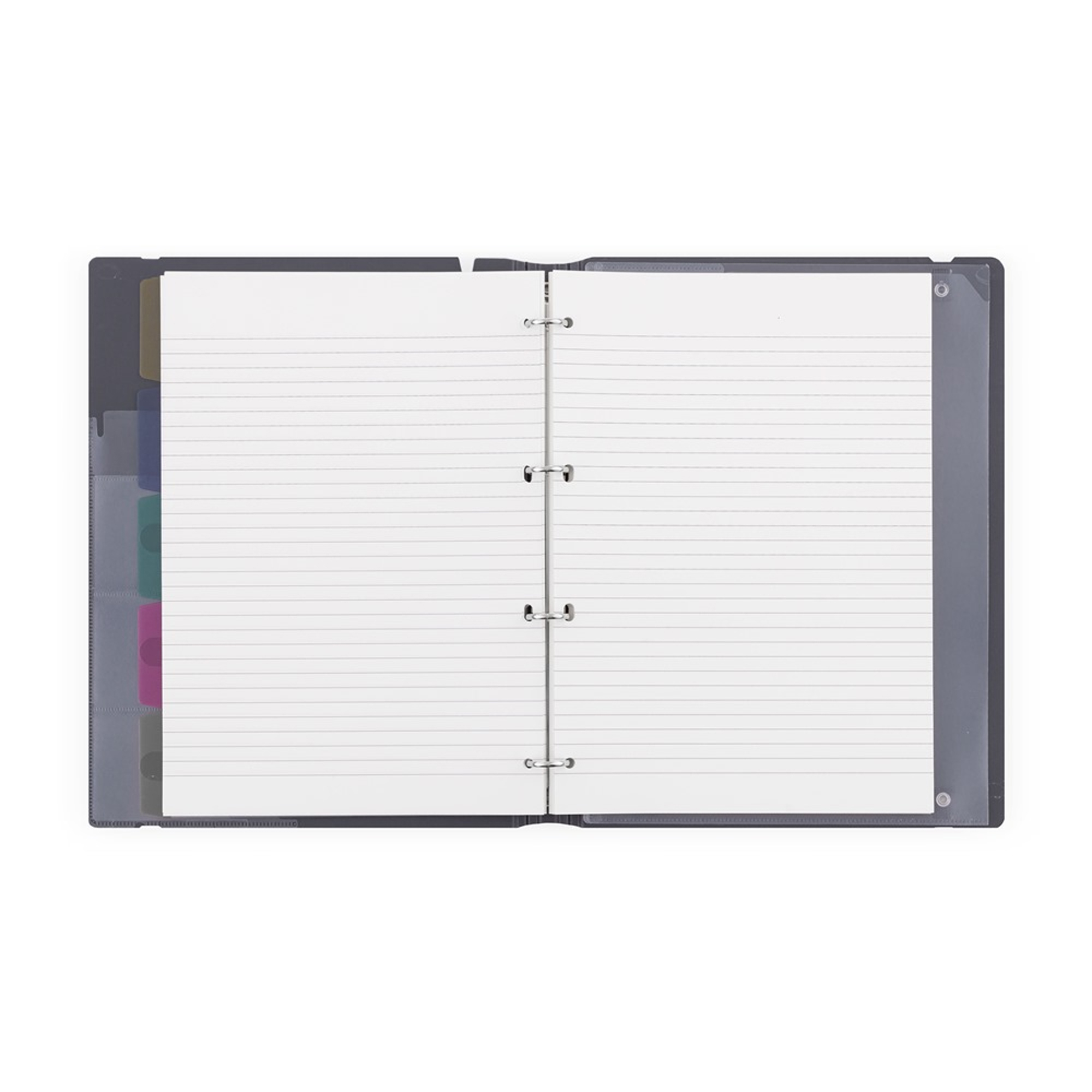 Sofistikovaný karisblok z kolekcie Verde je funkčný a štýlový štvorkrúžkový blok vo veľkosti A4, vyrobený z odolného a odľahčeného materiálu foam, ktorý je príjemný na dotyk. Obsahuje praktické rozraďovače a vnútornú náplň – 30 linajkových listov, 30 bodkovaných listov a 30 čistých listov bez potlače. Blok je vybavený úložným priestorom v podobe jedného veľkého vrecka a troch menších vreciek na vizitky. Uzatvára sa pomocou gumeného pásu, ktorý zaisťuje bezpečné uchovanie obsahu a dodáva celému bloku elegantný vzhľad.