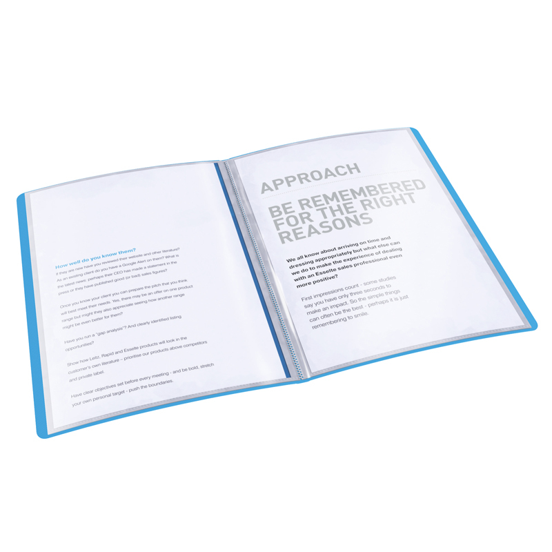 Katalógová kniha modrá v mäkkom obale vo sviežich farbách a štvorčekovanom designe Esselte VIVIDA na prezentácie alebo ukladanie dokumentov. Má 20 integrovaných obalov pre prezentáciu 40 dokumentov A4. Kapacita: 40 listov formátu A4 (80 g/m2), 2 listy / 1 obal. Samolepiaci popisovateľný chrbtový štítok. Katalógovú knihu je možné kombinovať s ostatnými výrobkami z radu Esselte VIVIDA. Rozmery: 14 x 310 x 231 (mm)