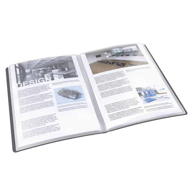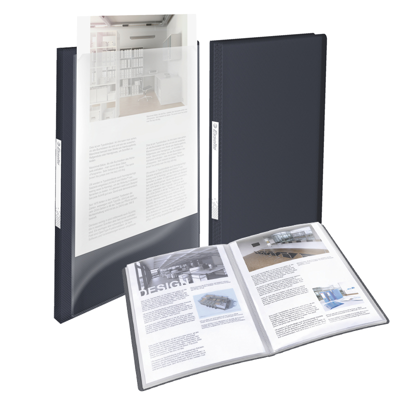 Katalógová kniha s 40 vreckami v mäkkom čiernom obale v štvorčekovanom designe Esselte VIVIDA na prezentácie alebo ukladanie dokumentov. Do predného obalu je možné vložiť titulnú stranu formátu A4. Má 40 integrovaných obalov pre prezentáciu 80 dokumentov A4. Kapacita: 80 listov formátu A4 (80 g/m2), 2 listy / 1 obal. Samolepiaci popisovateľný chrbtový štítok. Katalógovú knihu je možné kombinovať s ostatnými výrobkami z radu Esselte VIVIDA. Rozmery: 17 x 310 x 231 (mm)