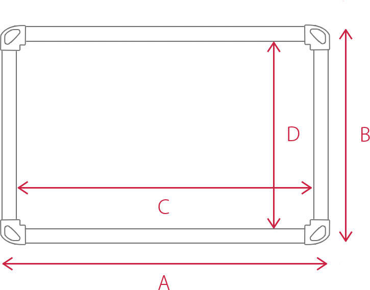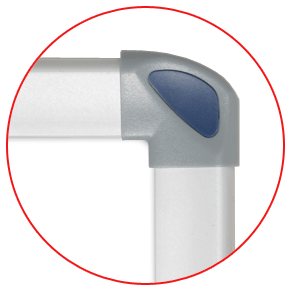 Biele magnetické tabule s lakovaným povrchom, popisovateľné za sucha stierateľnými popisovačmi, rámované v hliníkovom ráme so zaoblenými plastovými rohovými spojkami.