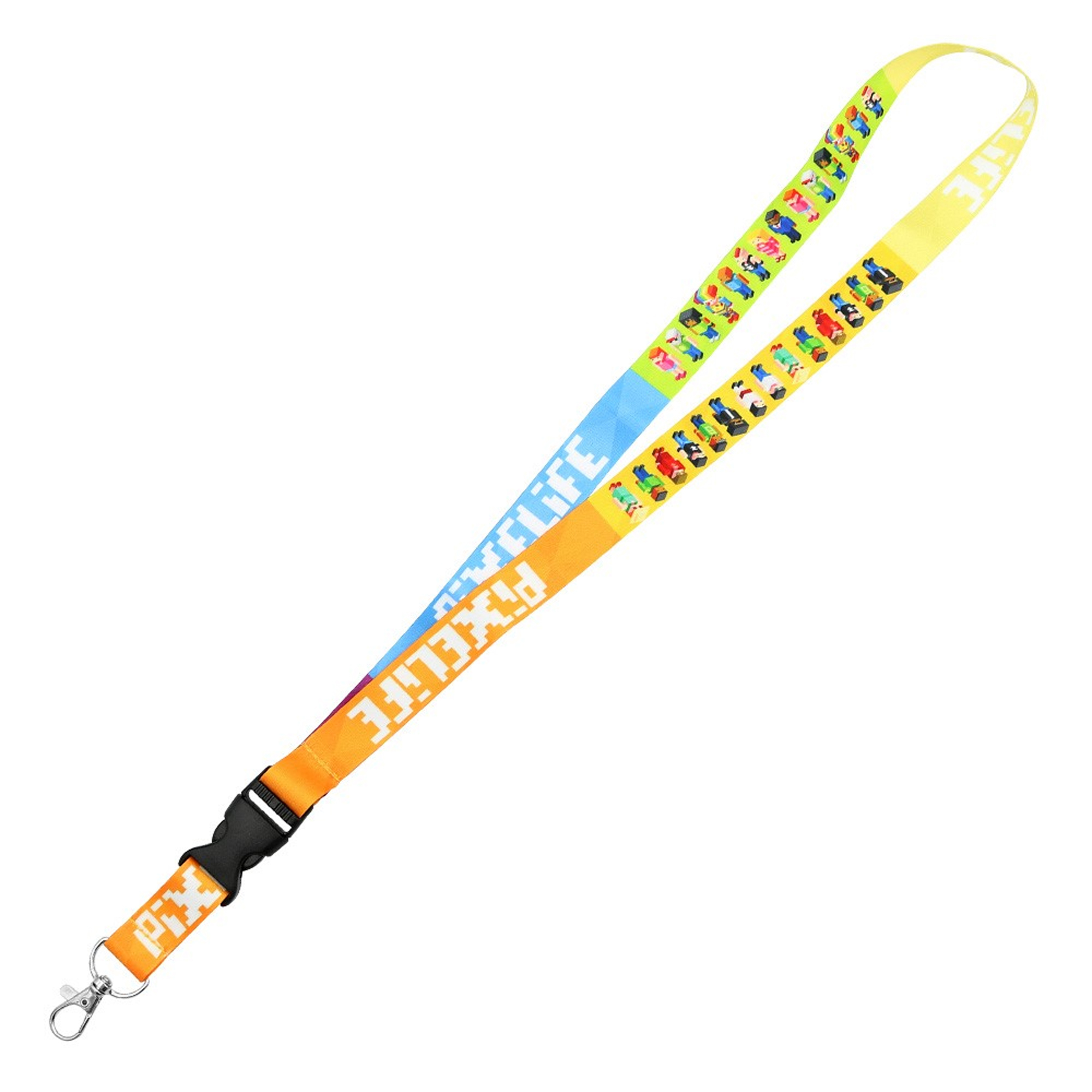 Detská kľúčenka na krk s motívom Pixelife je praktickým doplnkom pre deti. Je vybavená kovovou karabínkou a má nastaviteľnú dĺžku s možnosťou rozopnutia pomocou spony. Celková dĺžka kľúčenky je 85 cm. Vyrobená je z pevného a hladkého textilného materiálu so šírkou 2 cm, ktorý je príjemný na dotyk.