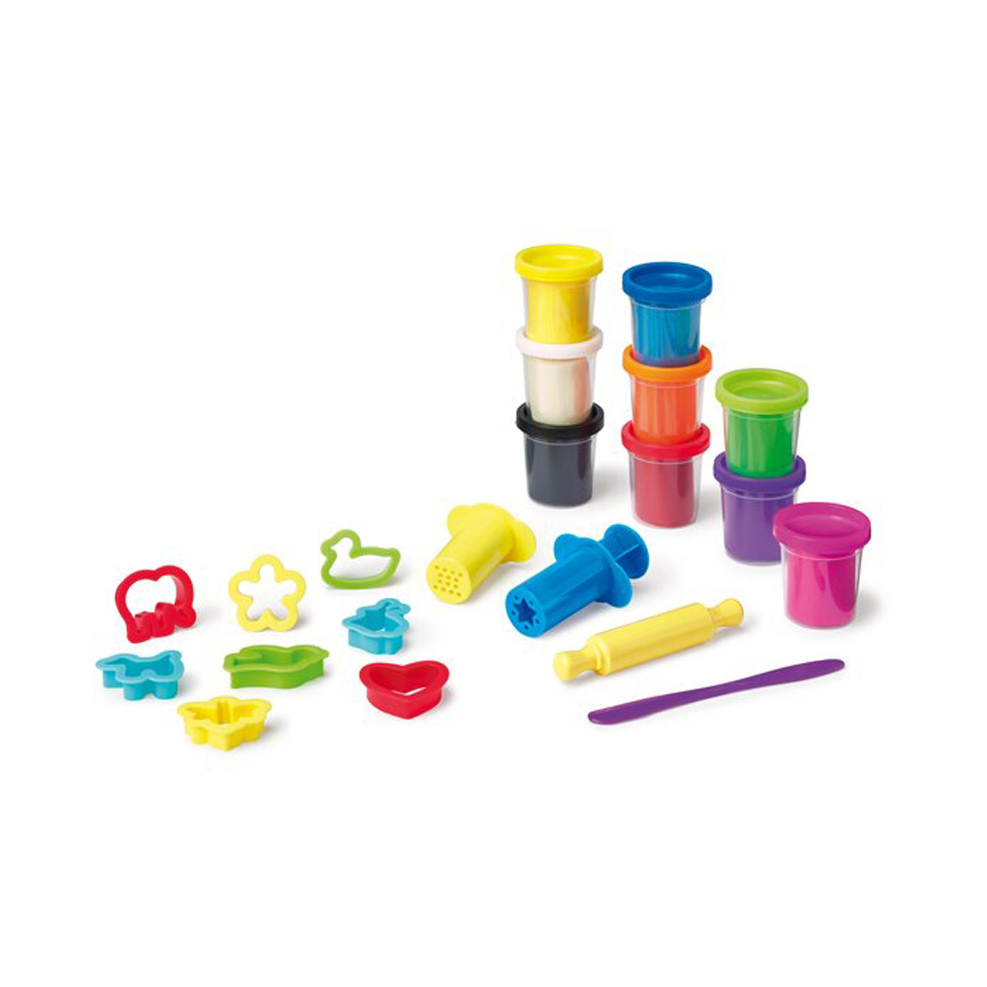 Modelovacia hmota 9 farieb. Ideálna aktivita pre rozvoj jemnej motoriky, zručnosti a predstavivosti detí od 3 rokov.