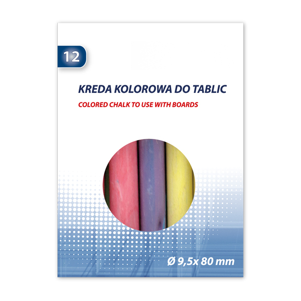 Odolné farebné kriedy voči zlomeniu. Valcový tvar kriedy zaručuje rovnakú hrúbku, stopu písma na kriedových tabuliach. Ľahko stierateľné. Rozmer kriedy pr. 9,5mm x 8cm. Balenie 12ks.