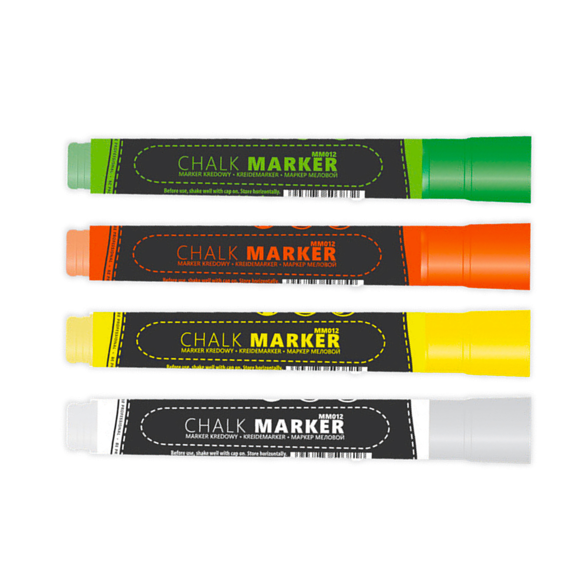 Ľachko stierateľný kriedový popisovač na báze vody. Určený na popisovanie všetkých hladkých povrchov ako napr. sklenené tabule, reklamné tabule, výklady alebo plastové povrchy. Sýte intenzívne farby majú výborné krycie vlastnosti. Vlhkou handrou z väčšiny povrchov sa dajú ľahko odstrániť. Systém čerpania atramentu zaisťuje plynulé a rovnomerné písanie. Šírka stopy okrúhleho hrotu je 2-3 mm. Farba biela