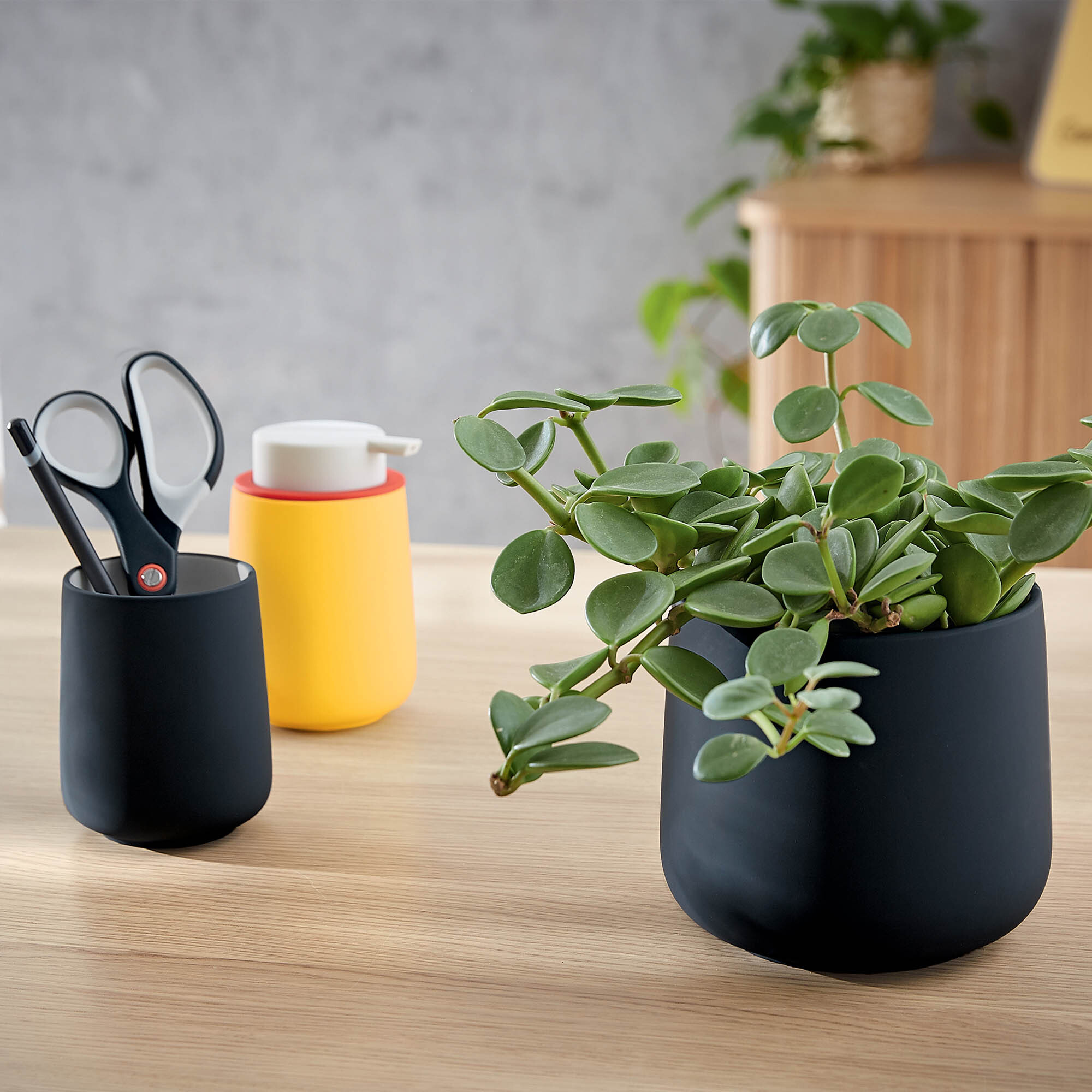 Tento kvalitne spracovaný keramický téglik je ideálny do kancelárie aj domov, na pracovný stôl na odloženie písacích potrieb či pravítka. Vhodné do kúpeľne napríklad na zubnú kefku a pastu. Vysokokvalitný matný povrch, ktorý vydrží každodenné používanie a ľahko sa čistí. Výška 108 mm a priemer otvoru 85 mm sú dostatočné na ukladanie a manipuláciu. Aj malé veci vám pomôžu zostať celý deň dobre naladení. Kolekcia Leitz Cosy kombinuje komfort domáceho pohodlia s prvotriednou kvalitou a vytvára tak pozitívne a produktívne pracovné prostredie. Vďaka minimalistickému dizajnu a príjemným farbám môžete svojmu pracovnému priestoru pridať štýl a farbu. Rozmery 108x87x87mm