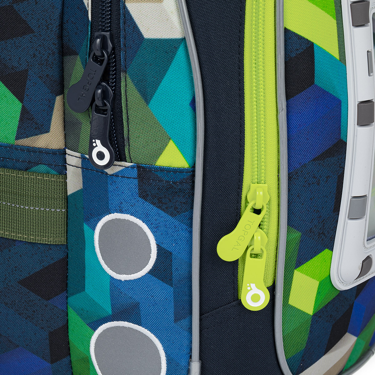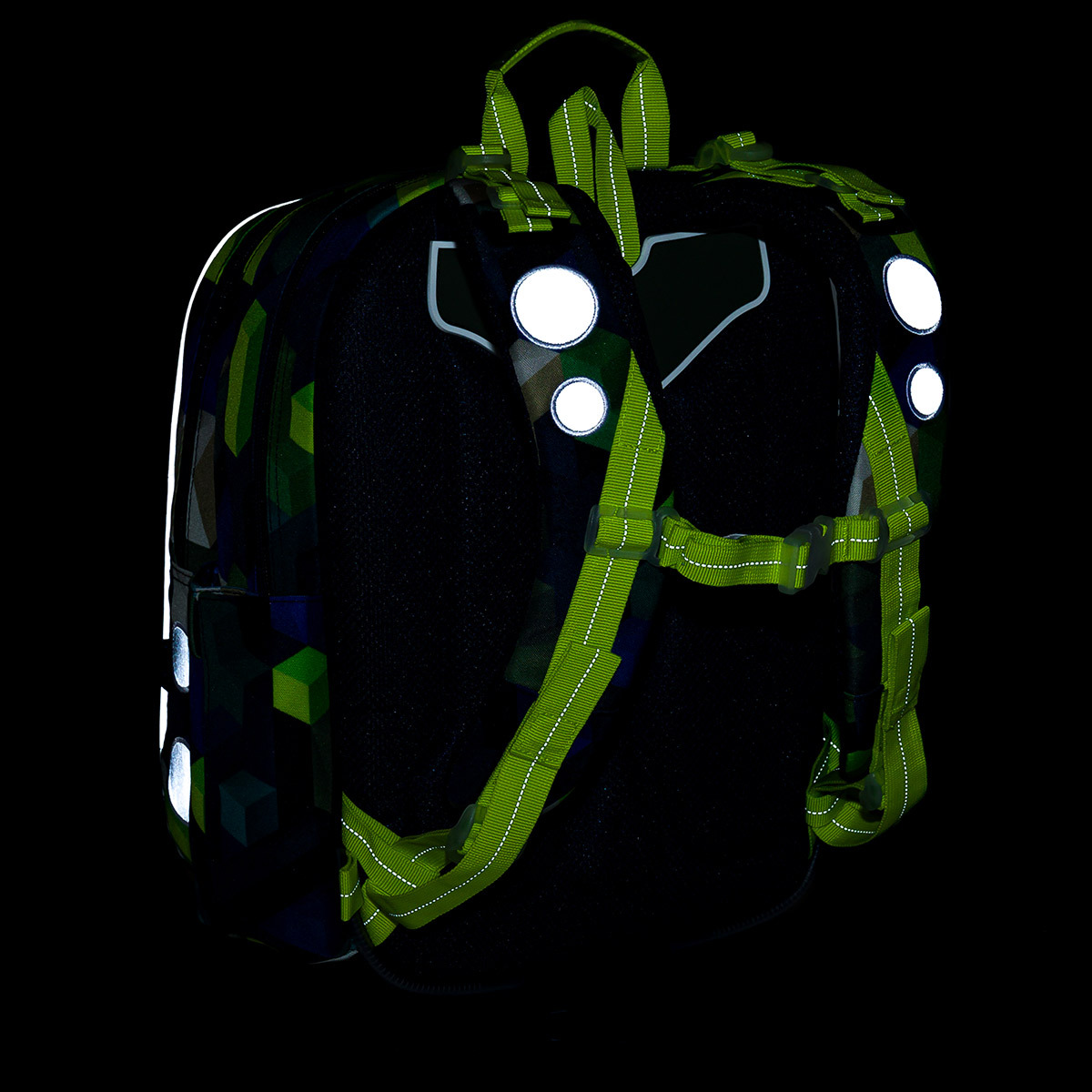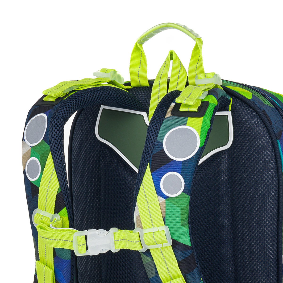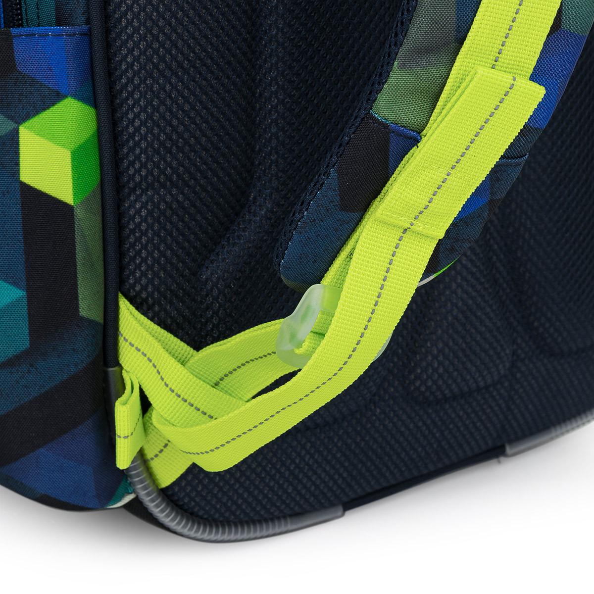 Taška má dve priestranné hlavné komory. Najťažšie učebnice alebo zošity si môžete uložiť do najširšej zadnej komory. Predná komora je o niečo užšia, vnútri je ukryté malé sieťované vrecko na zips a menovka.