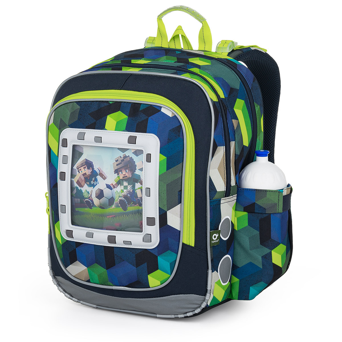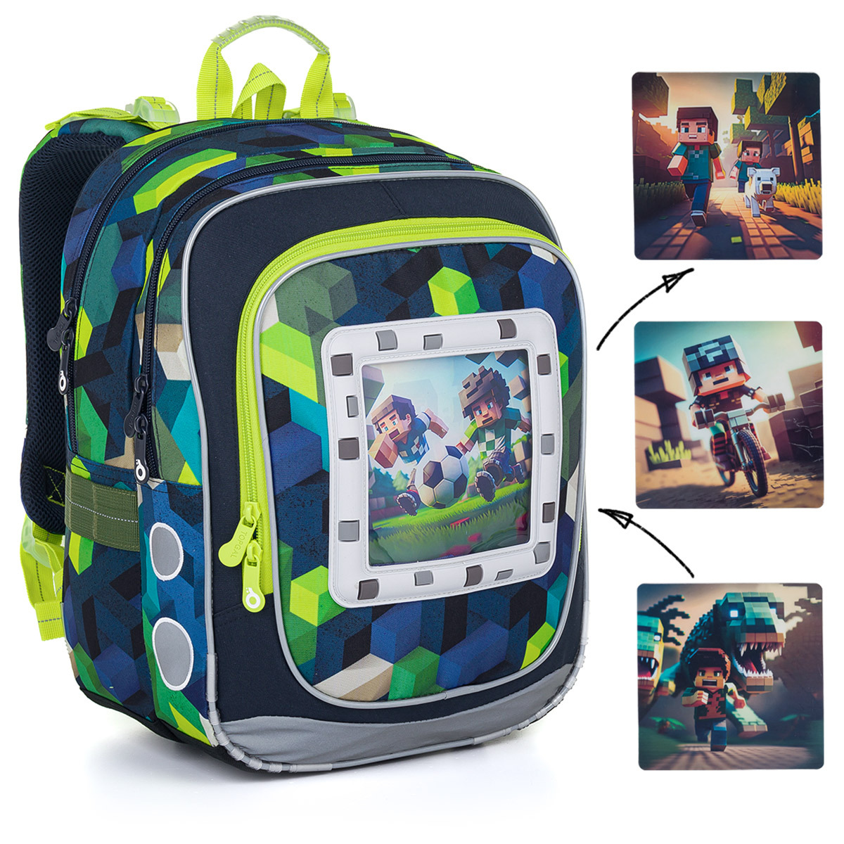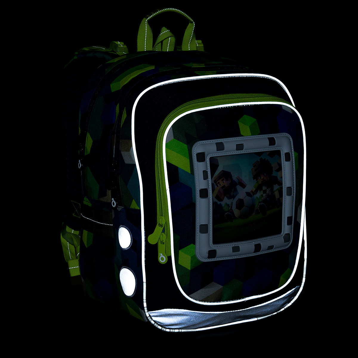 Model ENDY je dvojkomorová školská taška, ktorá váži menej ako jeden kilogram. Odporúčame ju pre chlapcov s výškou od 110 cm do prvej až tretej triedy základnej školy. Súčasťou tašky sú štyri obrázky so zvieracími a športovými motívmi v štýle Minecraft.