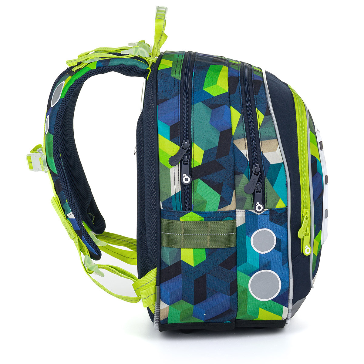 Ľahučký dvojkomorový model ENDY 26014 váži len o čosi viac než kilogram a skvele sadne menším školákom od prvej do tretej triedy základnej školy. Motív podmorského sveta s veselou rybkou si deti obľúbia na prvý pohľad – a vďaka vymeniteľným obrázkom môžete deťom každý deň vytvoriť batoh s novým vzhľadom. Zadná komora je najpriestrannejšia, preto odporúčame ukladať do nej najťažšie učebnice alebo dosky na zošity. Do prednej, užšej komory patrí ľahšia školská výbava – ideálne peračník z rovnakého dizajnového radu alebo box na desiatu. V prednom vrecku nechýba odnímateľná karabína na kľúče. Do bočného vrecka ľahko uložíte fľašu ZIVA s objemom 0,5 litra. Spodná časť batohu je chránená pevnými plastovými nožičkami, vďaka ktorým batoh stabilne stojí a odoláva každodennému používaniu. Samozrejmosťou sú reflexné prvky na prednej časti, bokoch aj ramenných popruhoch, ktoré zvyšujú viditeľnosť a bezpečnosť vášho dieťaťa na ceste do školy aj zo školy. Hlavné vlastnosti: nízka hmotnosť – iba 880 gramov pevná lisovaná chrbtová časť dve komory a menšie sieťované vrecko vo vnútri reflexné prvky na čele, bokoch aj ramenných popruhoch magnetky na koncoch popruhov pre jednoduché uchytenie pevné dno z materiálu TOPDURA s plastovými nožičkami úchyty na bedrový pás TOP 24021 alebo TOP 24022 praktické pútko na zavesenie batohu na lavicu výškovo nastaviteľná hrudná pracka odnímateľná karabína na kľúče nastaviteľné ramenné popruhy batoh testovaný v ITC Zlín PU zátěr proti dažďu