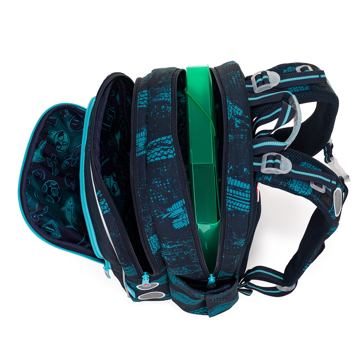 Ľahučký dvojkomorový model ENDY 26014 váži len o čosi viac než kilogram a skvele sadne menším školákom od prvej do tretej triedy základnej školy. Motív podmorského sveta s veselou rybkou si deti obľúbia na prvý pohľad – a vďaka vymeniteľným obrázkom môžete deťom každý deň vytvoriť batoh s novým vzhľadom. Zadná komora je najpriestrannejšia, preto odporúčame ukladať do nej najťažšie učebnice alebo dosky na zošity. Do prednej, užšej komory patrí ľahšia školská výbava – ideálne peračník z rovnakého dizajnového radu alebo box na desiatu. V prednom vrecku nechýba odnímateľná karabína na kľúče. Do bočného vrecka ľahko uložíte fľašu ZIVA s objemom 0,5 litra. Spodná časť batohu je chránená pevnými plastovými nožičkami, vďaka ktorým batoh stabilne stojí a odoláva každodennému používaniu. Samozrejmosťou sú reflexné prvky na prednej časti, bokoch aj ramenných popruhoch, ktoré zvyšujú viditeľnosť a bezpečnosť vášho dieťaťa na ceste do školy aj zo školy. Hlavné vlastnosti: nízka hmotnosť – iba 880 gramov pevná lisovaná chrbtová časť dve komory a menšie sieťované vrecko vo vnútri reflexné prvky na čele, bokoch aj ramenných popruhoch magnetky na koncoch popruhov pre jednoduché uchytenie pevné dno z materiálu TOPDURA s plastovými nožičkami úchyty na bedrový pás TOP 24021 alebo TOP 24022 praktické pútko na zavesenie batohu na lavicu výškovo nastaviteľná hrudná pracka odnímateľná karabína na kľúče nastaviteľné ramenné popruhy batoh testovaný v ITC Zlín PU zátěr proti dažďu