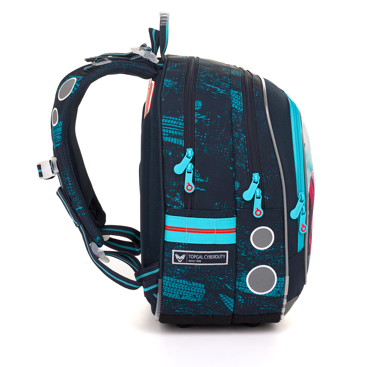 Model ENDY váži menej ako kilogram, preto je ideálny pre dievčatá od výšky 110 cm od prvej do tretej triedy základnej školy. Súčasťou batohu sú štyri obrázky myšky, srnky, medveďa a veveričky. Hravý dizajn dopĺňa plyšový prívesok v tvare srdca. Hravý dizajn dopĺňa plyšový prívesok v tvare srdca. BTaška má dve priestranné hlavné komory. Najťažšie učebnice alebo zošity si môžete uložiť do najširšej zadnej komory. Predná komora je o niečo užšia, vnútri je ukryté malé sieťované vrecko na zips a menovka. Do hlbokého predného vrecka sa zmestí napríklad peračník PENN 24005 v rovnakom dizajne alebo krabičku na svačinu. Do bočných vreciek sa zmestia zdravé fľaše ZIVA s objemom 0,5 litra. Hlavná charakteristika: váži iba 880 gramov má pevnú tvarovanú chrbtovú časť dve komory a jedno hlboké predné vrecko výškovo nastaviteľná hrudná pracka nastaviteľné ramenné popruhy pútka pre bedrový pás TOP 24021 a TOP 24022 konce ramenných popruhov sú vybavené magnetmi (pre ľahšie uchytenie vlajúcich koncov) reflexné prvky prvky - na čele a bokoch batohu záter proti dažďu pevné dno z materiálu TOPDURA batoh bol testovaný v ITC Zlín odnímateľná karabínka na kľúče pútko na zavesenie batohu na lavici pútko na prenášanie batohu v ruke