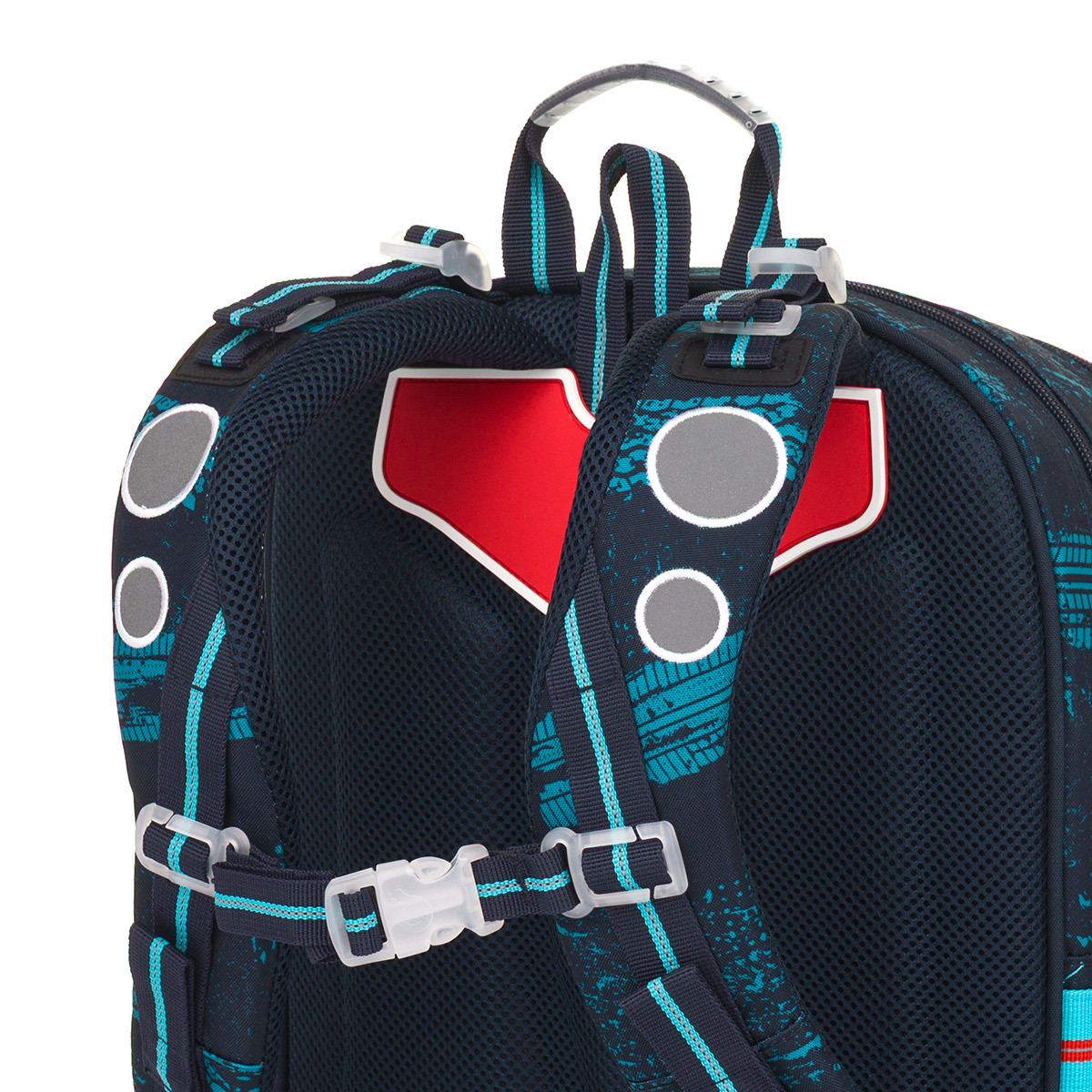 • bezpečnostné reflexné prvky vpredu, na bokoch aj na popruhoch