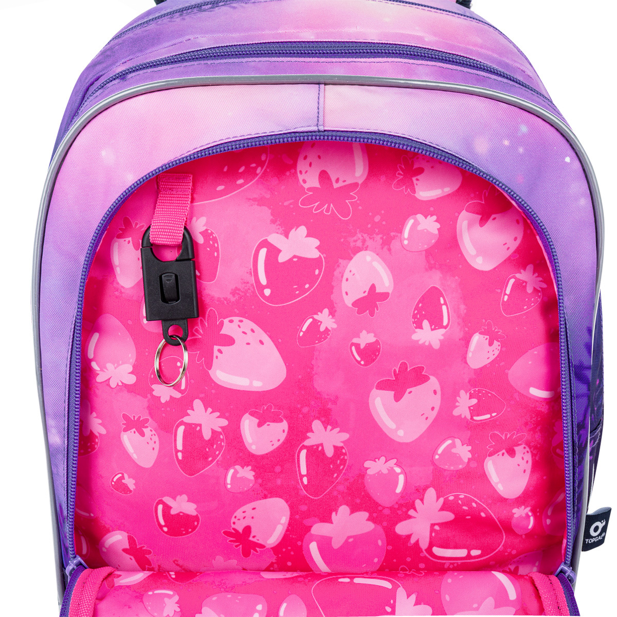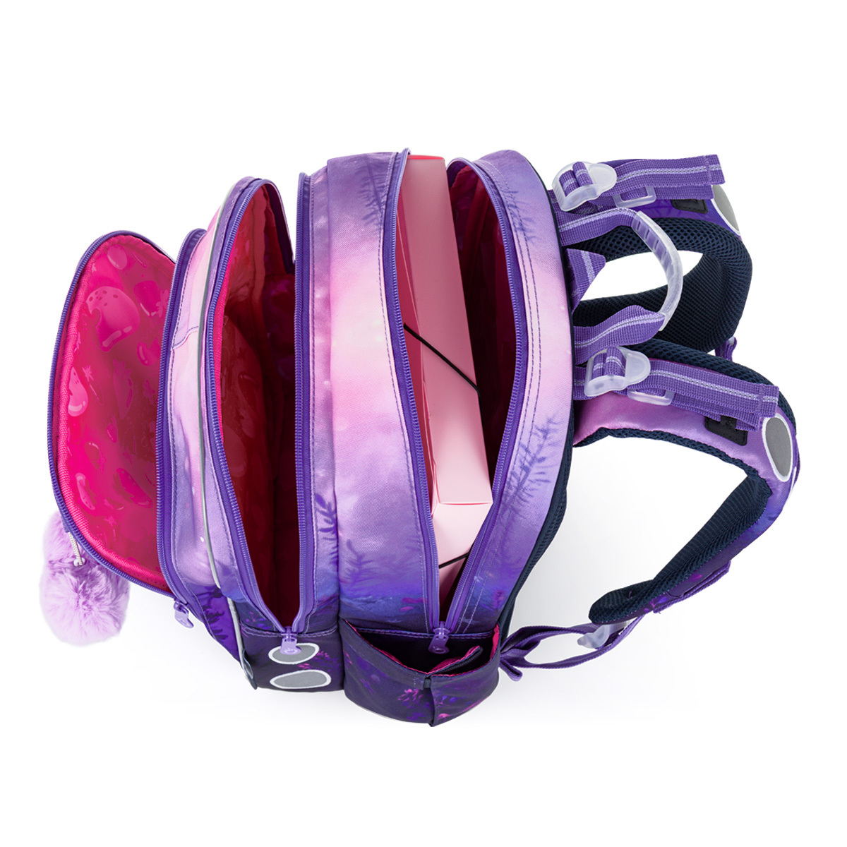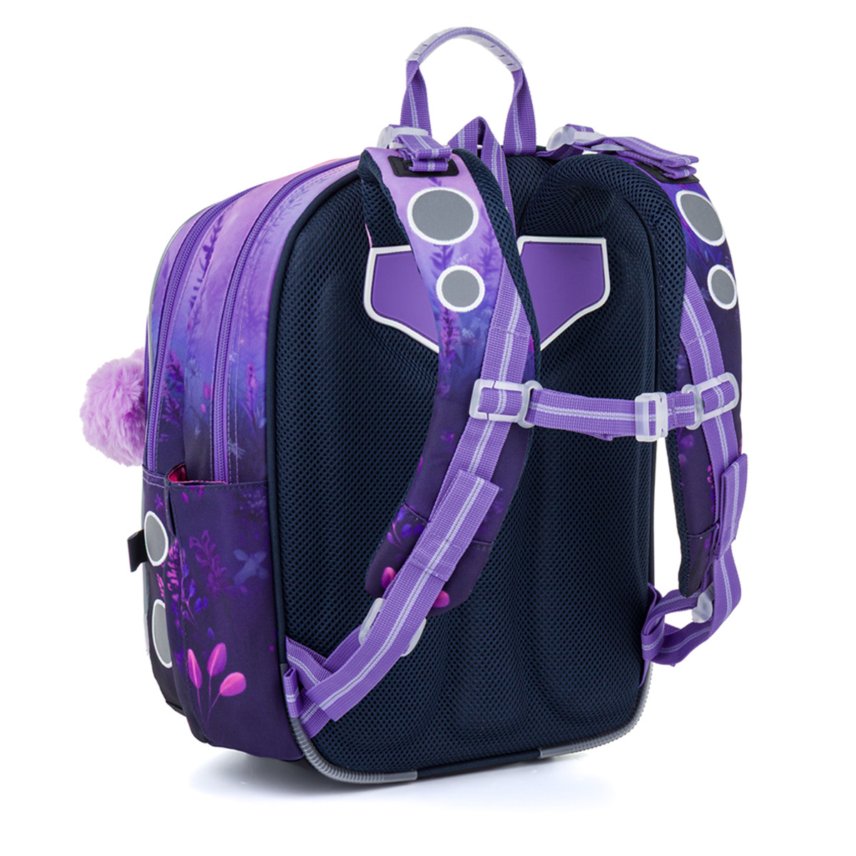 Ľahučký dvojkomorový model ENDY váži len niečo málo cez 1 kilogram a perfektne sedí útlym školáčkam od prvej do tretej triedy ZŠ. Vďaka rozkošnému motívu fialového zajačika a mäkučkému bambuľkovému prívesku sa rýchlo stane obľúbeným spoločníkom každej malej slečny.