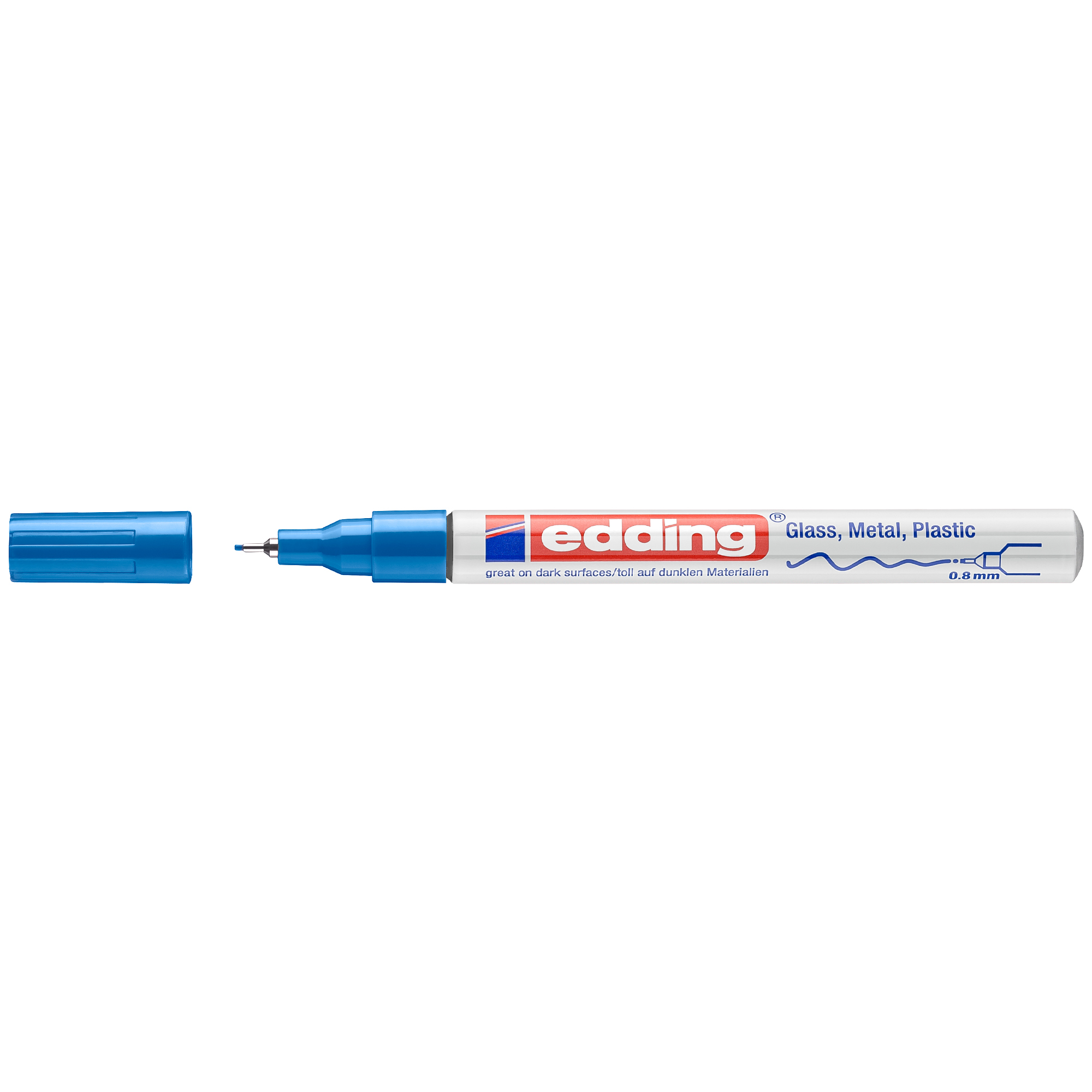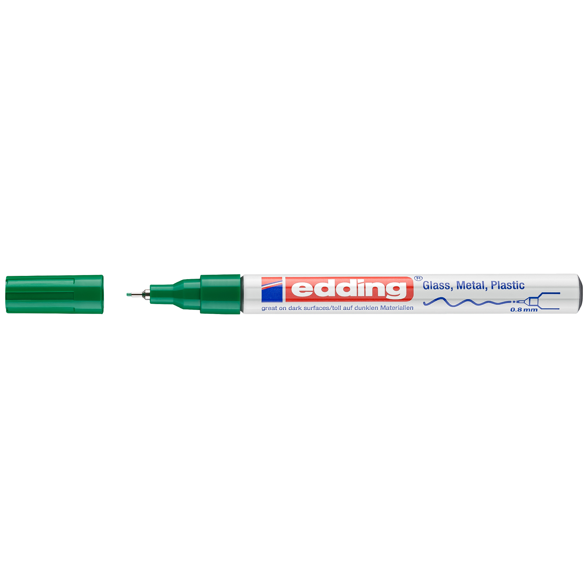 Výnimočne odolný lakový popisovač s tenkým hrotom edding 780 pre trvalé značenia takmer všetkých materiálov, napr. papier, lepenka, kov, drevo, plast a sklo. Popisovač s hliníkovým obalom vhodný pre priemyselné použitie aj v exteriéry. Stopa písma 0,8mm. Obsahuje rýchloschnúci atrament s vynikajúcou krycou schopnosťou. Je vhodný pre vodovzdorné písanie, svetlostály a odolný voči oderu. Vysoká stálosť na svetle, nezmazateľnosť a odolnosť voči ohňu. Tepelný rozsah použitia od-5C do +170C. Pritom značenie je viditeľné od -40C do +400C. Prietok atramentu riadený ventilom. Hrot okrúhly, šírka stopy 0,8 mm