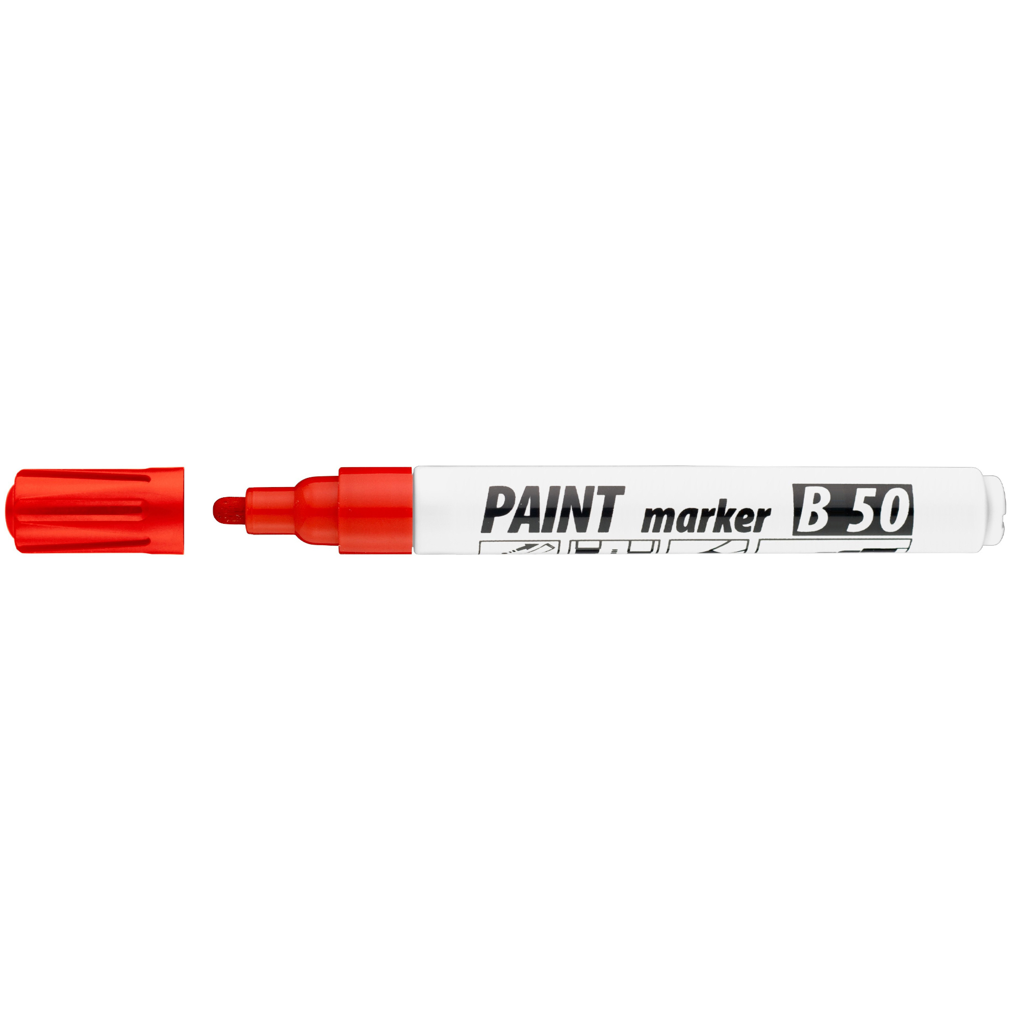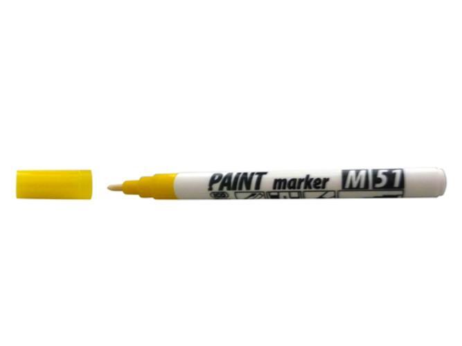 Lakový popisovač s tekutým permanentným lakom na vodeodolné značenie a popisovanie. Stopa písma 1 - 1,5mm. Vhodné na označovanie, značenie plastov, kovu, skla, dreva, kože prakticky všetkých povrchov. Na povrchu rýchlo schne a vytvára dobrý krycí efekt. Po zaschnutí značenie je odolný voči oderu a vode. Má vysokú tepelnú a svetelnú odolnosť. Pred prvým použitím treba napumpovať lak a to jednoduchým zatláčaním hrotu popisovača.