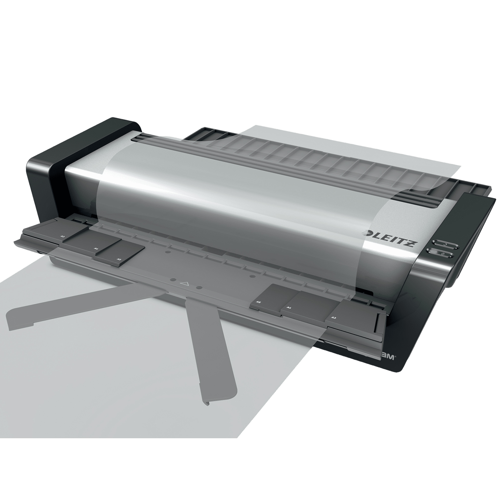 Plne automatický, prémiový laminátor A3 s vysokou laminovacou rýchlosťou 2000 mm/min a unikátnou technológiou senzora. Určené pre intenzívne profesionálne laminovanie. Automaticky rozpozná hrúbku obalu a nastaví vďaka tomu správnu rýchlosť. Pre obaly 80-250 mikrónov. Obal 80 mik. A4 zalaminuje približne za 15 sekúnd. Funkcia Auto reverse zabraňuje prípadnému uviaznutiu obalu vo vnútri laminátora. Zahriatie do 1 min. Pre intenzívne Pre profesionálne použitie. Používa mechanizmus 6 valcov. Z toho 4 sú vyhrievané. Čas predohrevu je 1min. Nízka spotreba energie, automatické vypnutie po 30 minútach nepoužívania. Súčasťou balenia je štartovacia sada laminovacích fólii. Rozmer 482 x 125 x 400 (mm). Záruka 3 roky