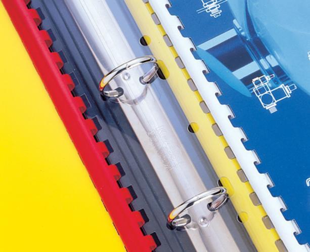 Plastové nasadzovacie chrbty nasuniete na dokument bez perforovania alebo dierovania. Zaoblenia na obidvoch koncoch lišty uľahčujú nasunutie. Špeciálne profilovanie stien chrbtov zaručuje trvalý a pružný prítlak a preto môžete bez akéhokoľvek iného spojenia zviazať dokument až do formátu 90 listov. Dostupné vo farbách: biela, červená, číra, modrá a čierna.