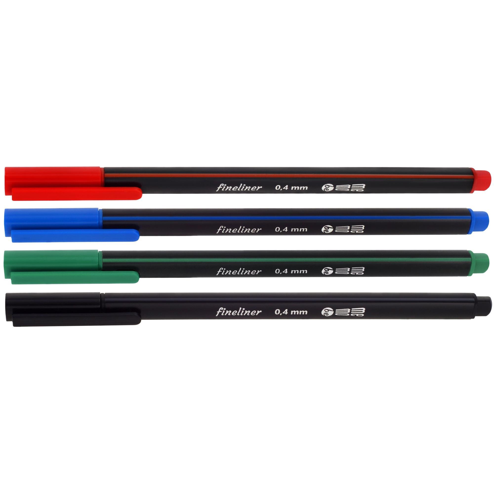 Táto sada všestranných linerov je vhodná na písanie, kreslenie, zvýrazňovanie a vyfarbovanie. Je vybavený pevným vláknitým hrotom typu 'F' v kovovom puzdre, ktorý zabezpečuje odolnosť voči zlomeniu a umožňuje presnú prácu aj pri použití pravítka alebo šablóny. Dĺžka stopy písma až 800m. Trojhranná úchopná zóna poskytuje pohodlný úchop aj pri dlhodobom používaní. Sada obsahuje základné 4 farebné odtieňe. Vďaka jemnej stope písma 0,4 mm dosiahnete precízne a detailné výsledky. Liner má ventilačný uzáver vo farbe atramentu, ktorý predlžuje jeho životnosť a zabraňuje vysychaniu. Perfektný nástroj pre školu, kanceláriu i kreatívne práce.